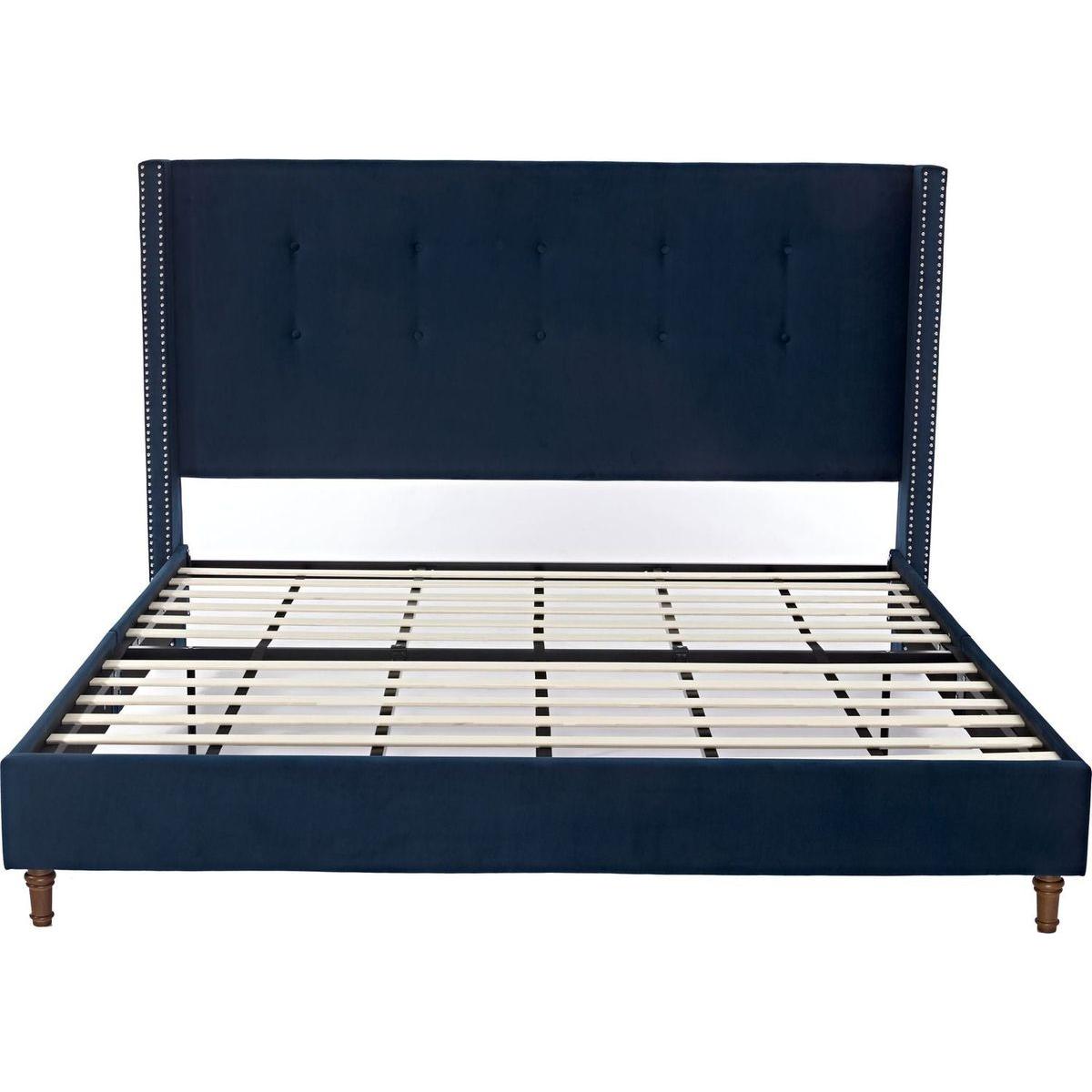 Upholstered King Bed / 54" High Headboard / Traditional Hand Buttoned Tufting / Nailhead Trim Wingback / No Box Spring Needed / Easy Assembly / Blue Velvet