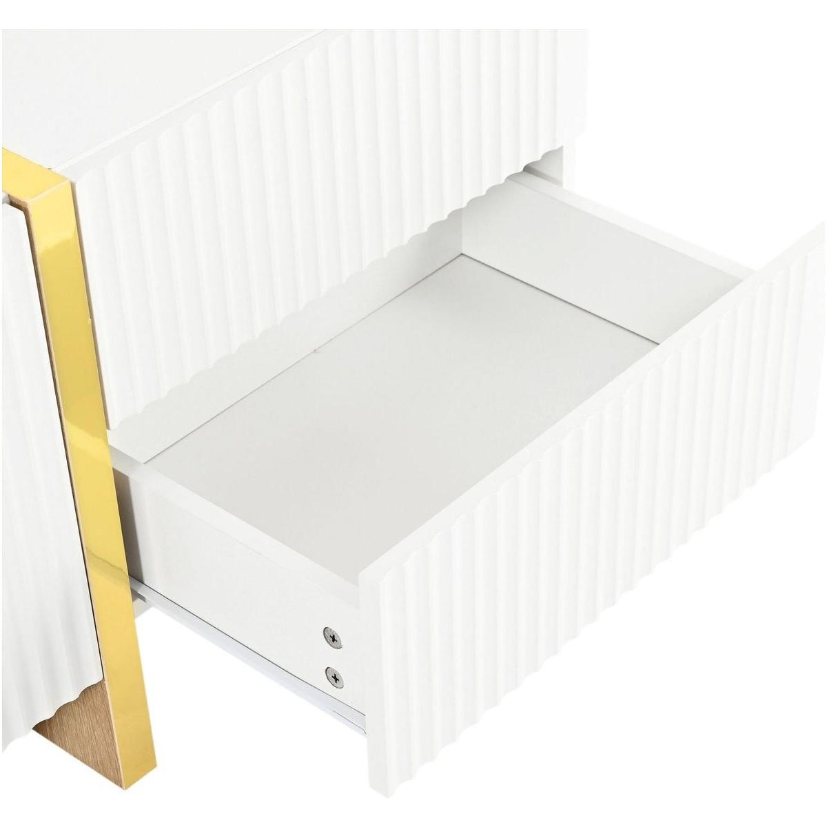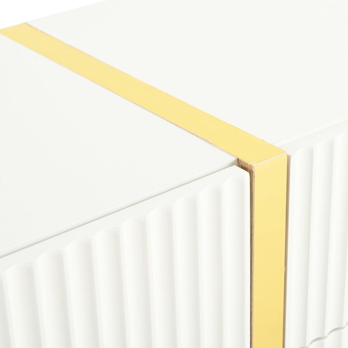 Luxury Fluted TV Stand for TVs Up to 80", Modern Entertainment Center with Storage Cabinets & Drawers, Smooth Media Console with Golden Wood Grain Legs for Living Room, White