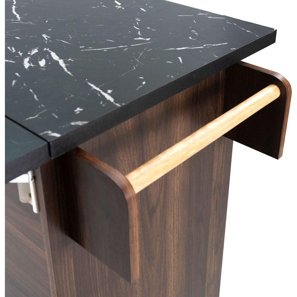 - [Convenient Drop Leaf] The kitchen cart has a drop leaf countertop, and the drop leaf can be opened or folded freely according to the needs of use and environment. When you don't need it, you can fold it and place it against the wall, which saves storage space and makes space management easier.