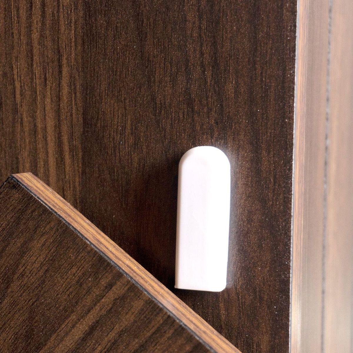 The anti-tip limiter on the trash can door keeps the door from tipping over.
