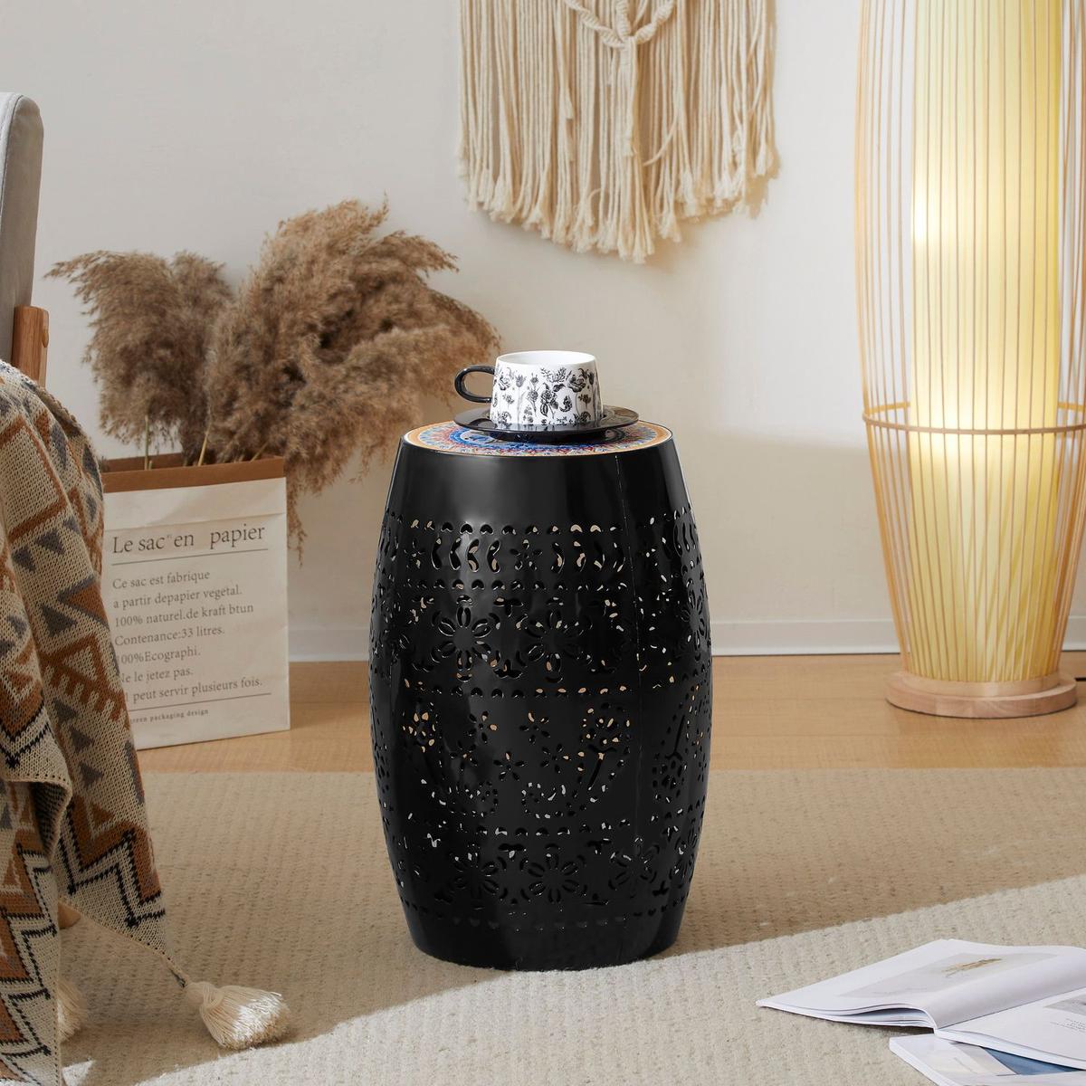 - FUNCTIONAL ART:This 12.25" wide by 18.25" high mosaic side table is the right height for snacks, beverages, and plants. Weight Capacity:10.2lb.Combination of a boho pattern ceramic tile top with an elegant and unique cut-out pattern metal frame, blending with any room decor from boho to modern minimalism.