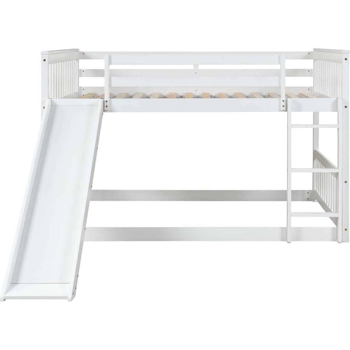 - [Multiple Functional Bunk Bed]: This low loft bed is featured a built-in ladder and slide for children to have fun and develop their sense of balance and coordination.