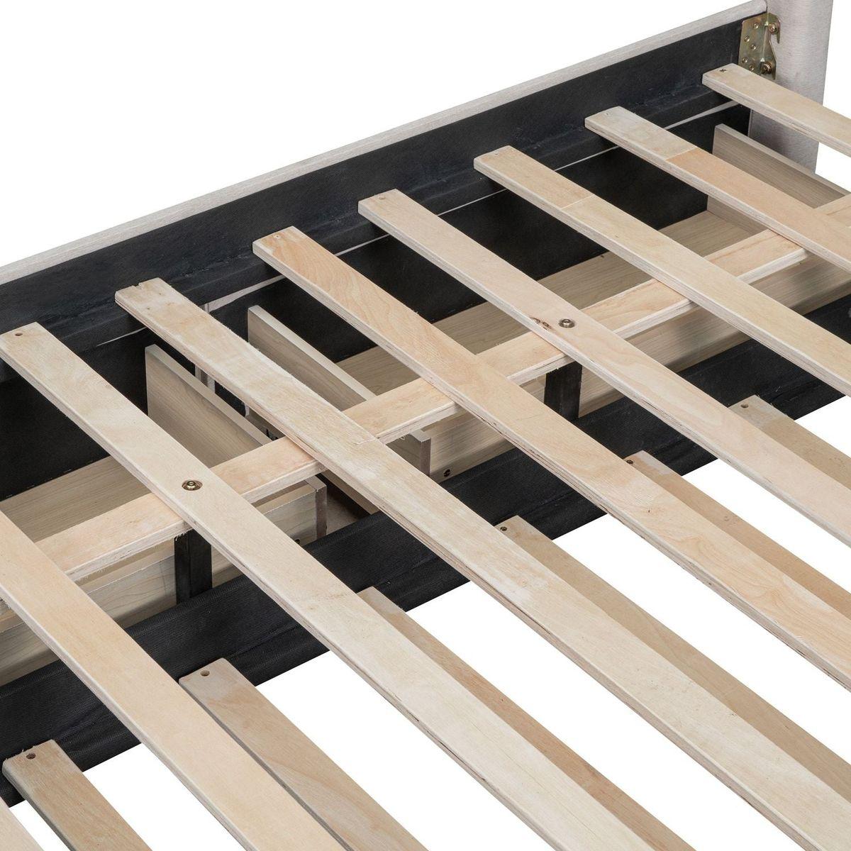 - [Maximized Space] The upholstered platform bed with two drawers and a large trundle can easily be pulled in and out for maximum storage space and extra sleeping area, perfect for organizing anything from clothes and bed linens to toys and games, and for sleepover.