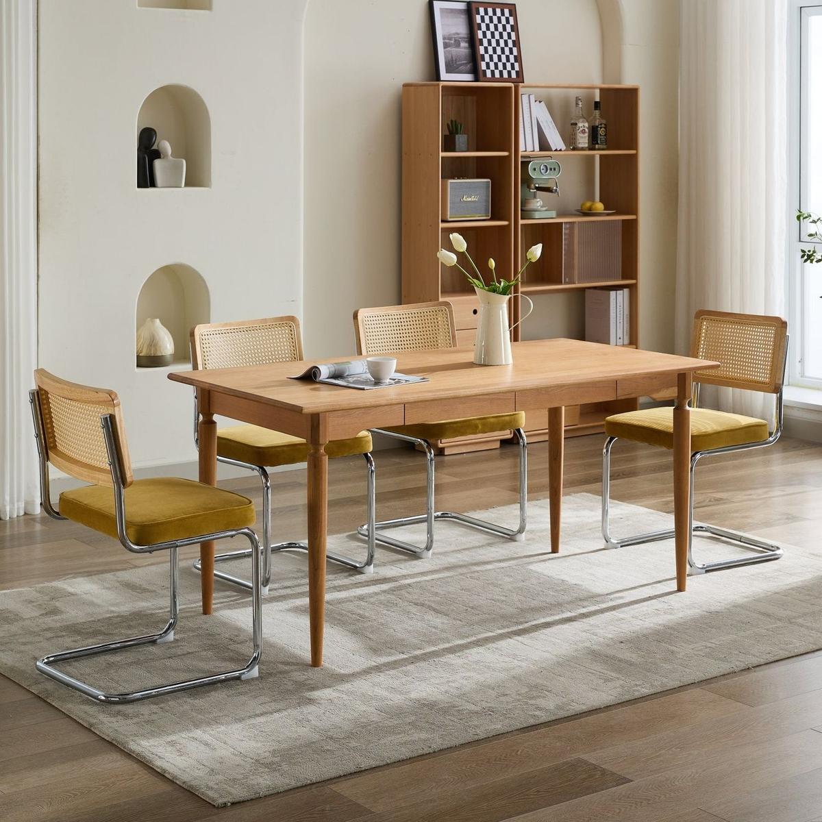 Rattan Back provides excellent breathability and rebound,Hand-woven rattan in oak tone enhances the vibe of artwork.