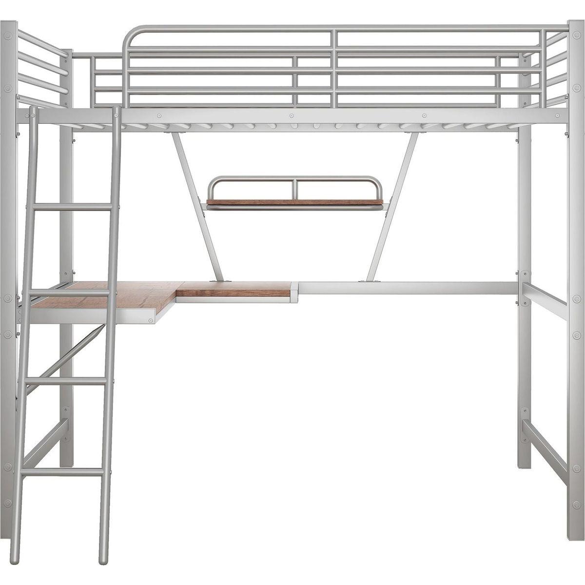Full Size Loft Metal&MDF Bed with Desk and Shelf, Silver