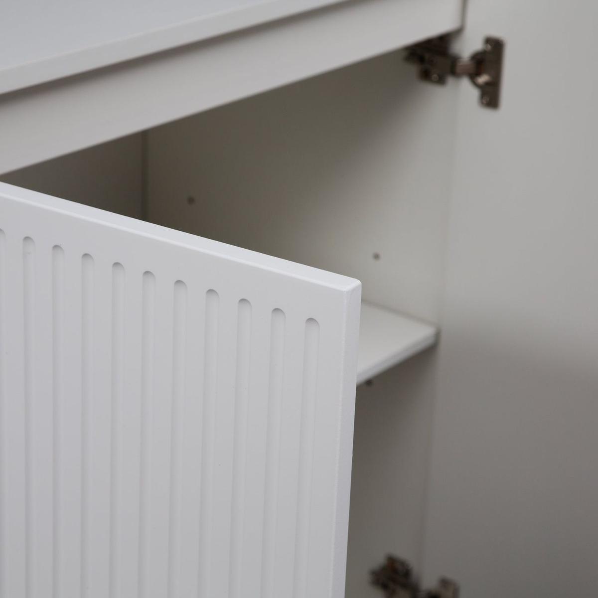 - 【Large Storage Space】: The buffet table is equipped with a wooden corrugated board decorative door, with a spacious top and four large spaces inside, which is perfect for placing your collections or decorations or necessities, keeping your room neat and organized