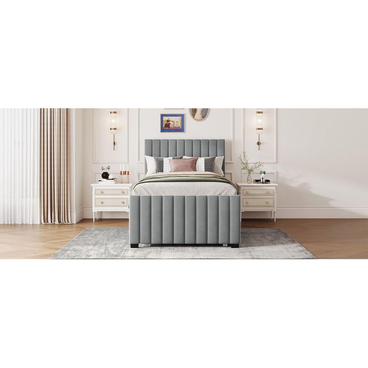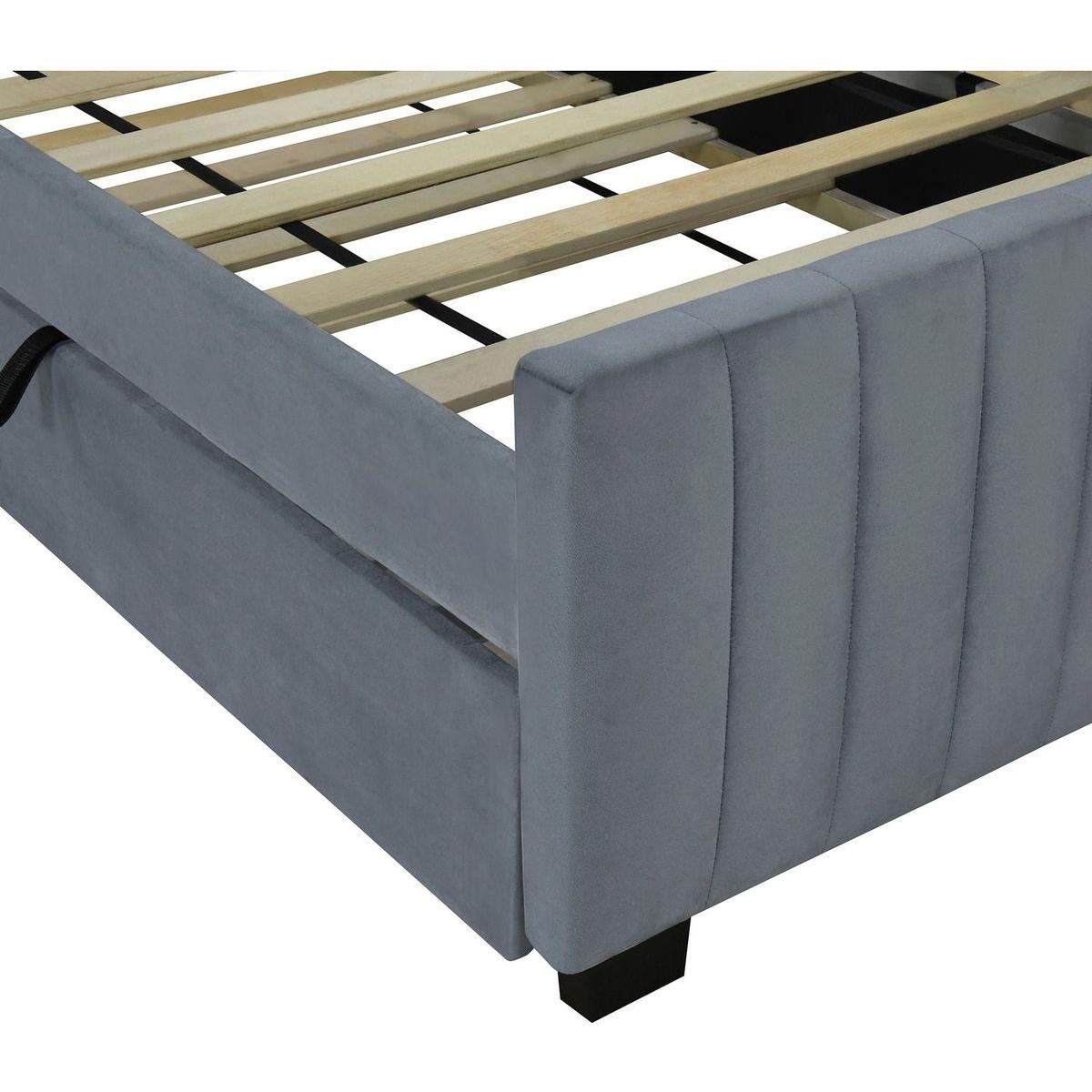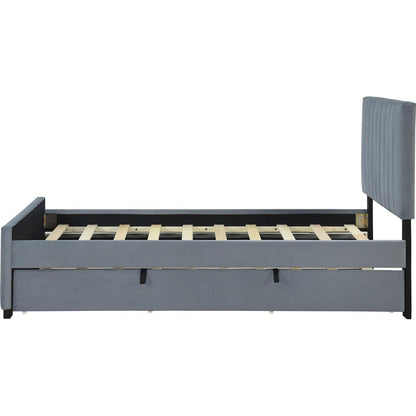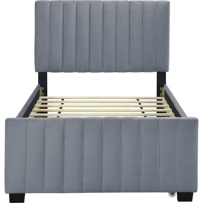 Twin Size Velvet Upholstered Platform Bed with Twin Size Trundle, Gray