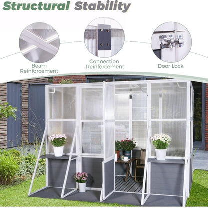 Greenhouse, Wooden Lean to Greenhouses for Outdoors, Heavy Duty Walk in Green House for Outside Winter, Large Hot House for Sunroom Storage Shed, Garden, Backyard(103.9"X98.4"X77.6")