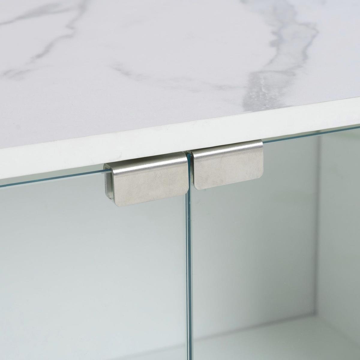 With its simple rectangular appearance, this TV stand adds a touch of modern orderly comfort to your living space. Meanwhile the spacious imitation marble tabletop also provides elegant and high-end visual experience, Which will complement various home styles.