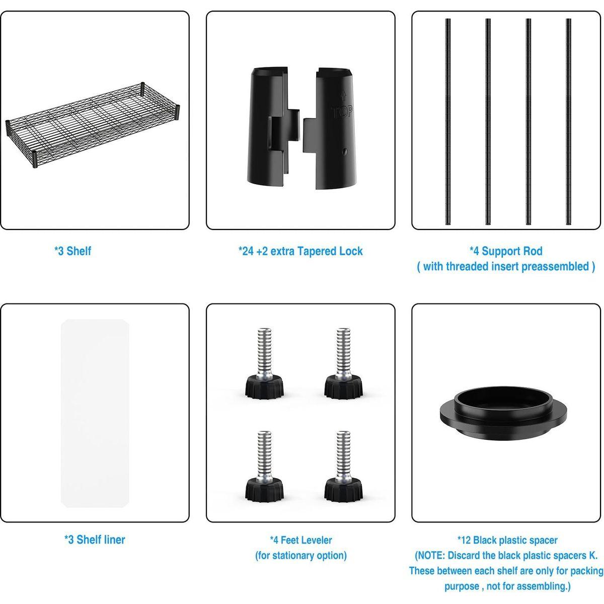 - [EXTREMELY DURABLE] - Wire shelving made of heavy steel, it has excellent rust resistance and oxidation resistance. Our wire shelf liner is crafted to provide unparalleled quality, longevity, function and beauty. Better quality thicker than the competition. The 3 tier shelf unit passed NSF certified, safe and reliable. Storage rack are perfect addition to home, office.