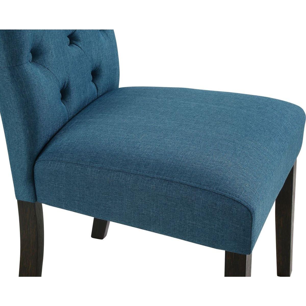 - The seats of the chair and bench are padded and button tufted. The durable wooden legs are finished in rich black to match the style.