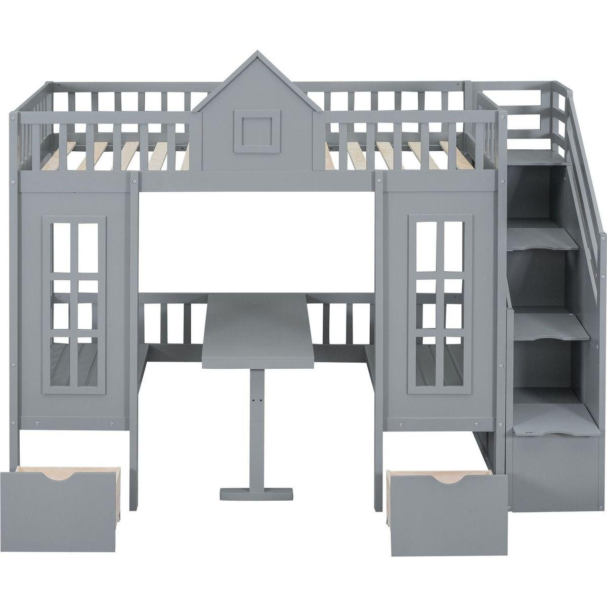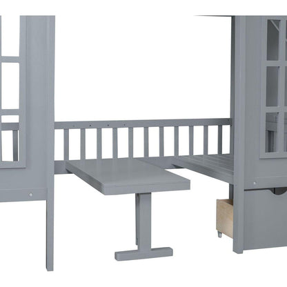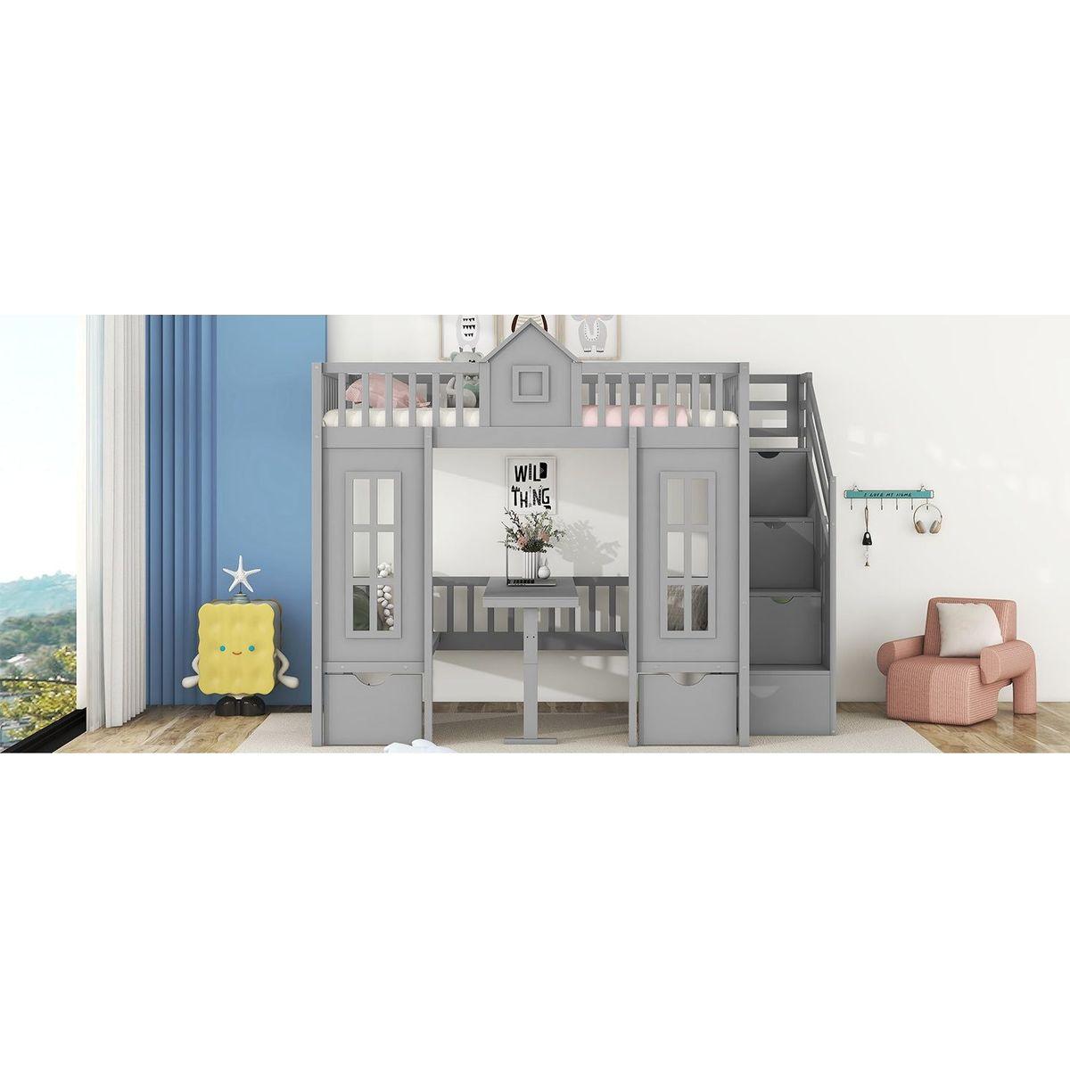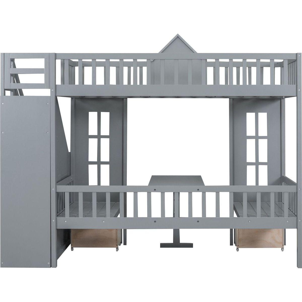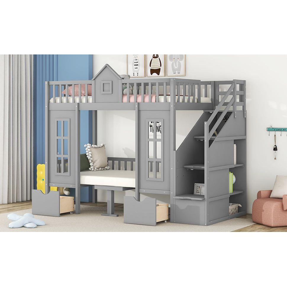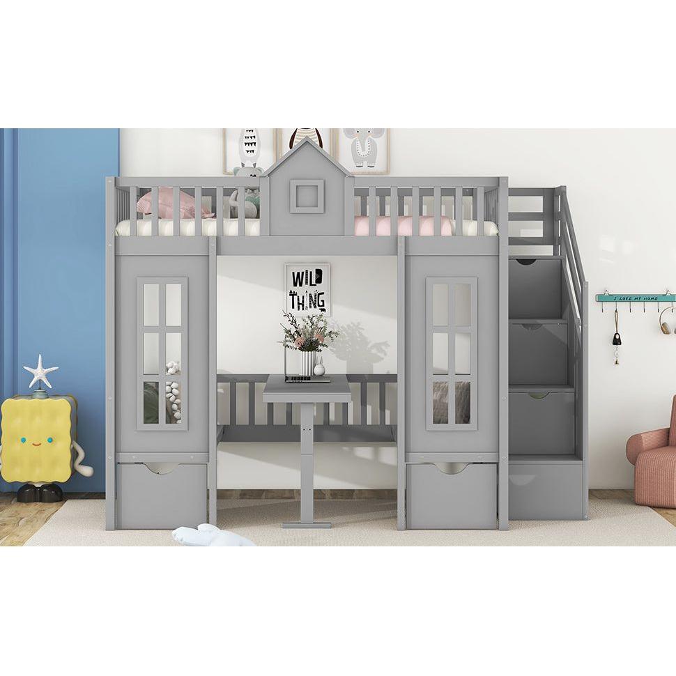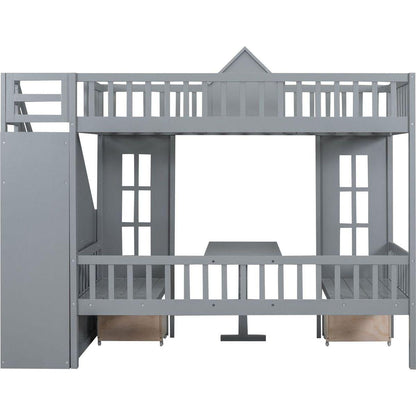 Twin-Over-Twin Bunk Bed with Changeable Table, Bunk Bed Turn into Upper Bed and Down Desk -Gray