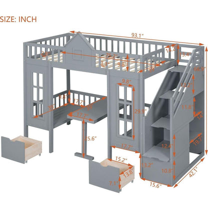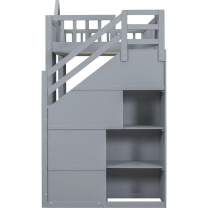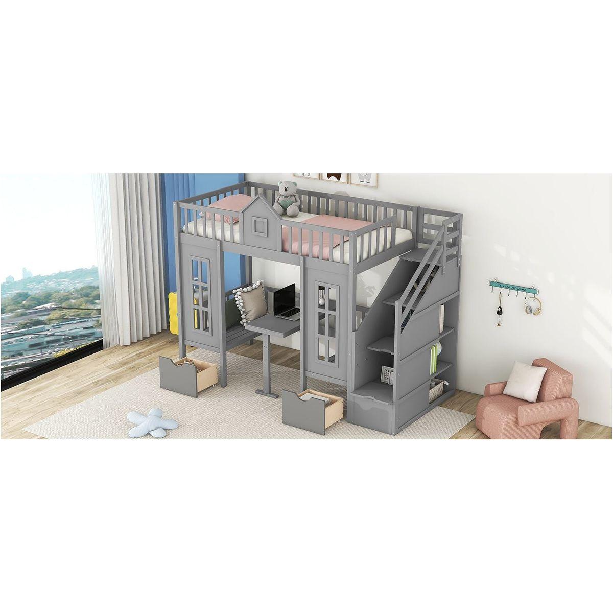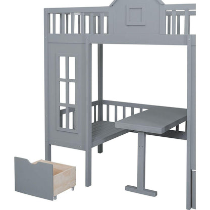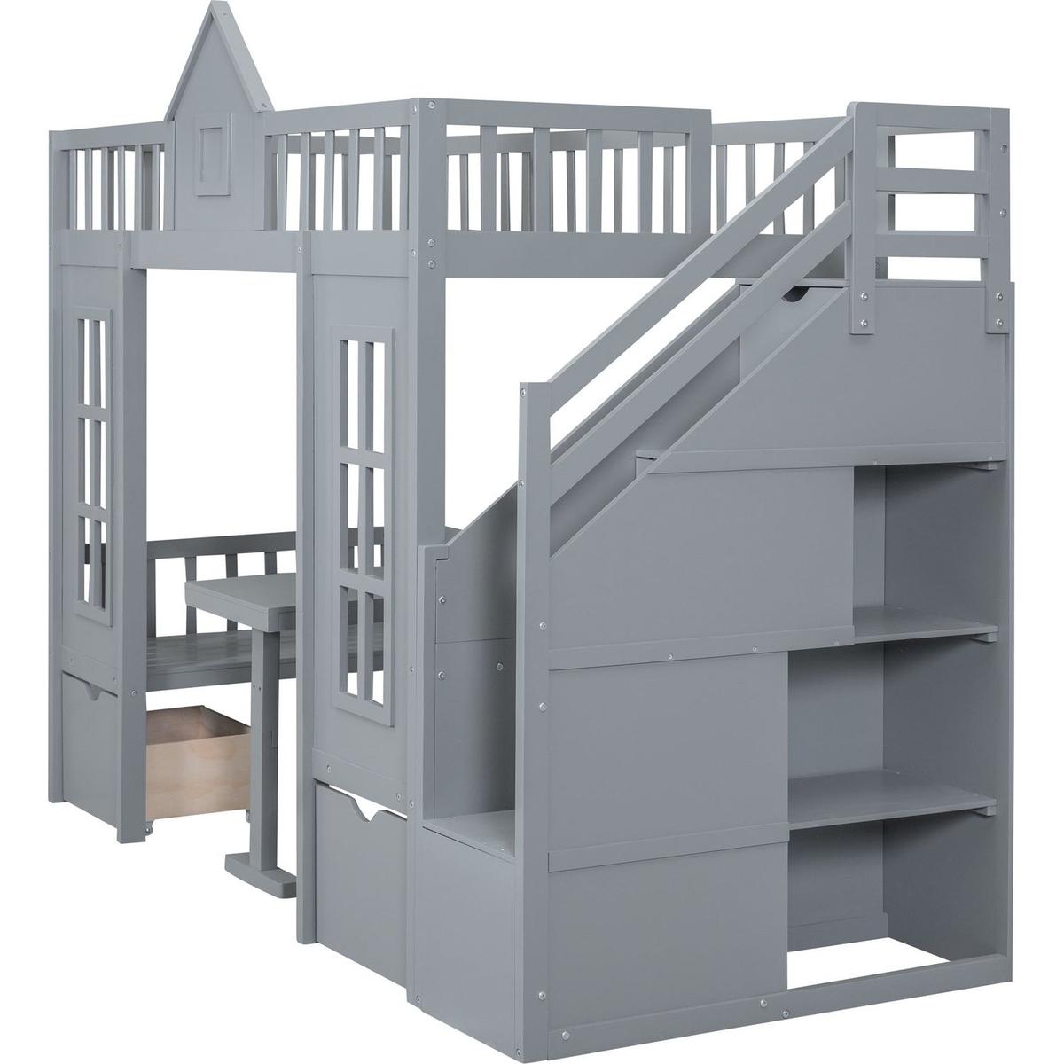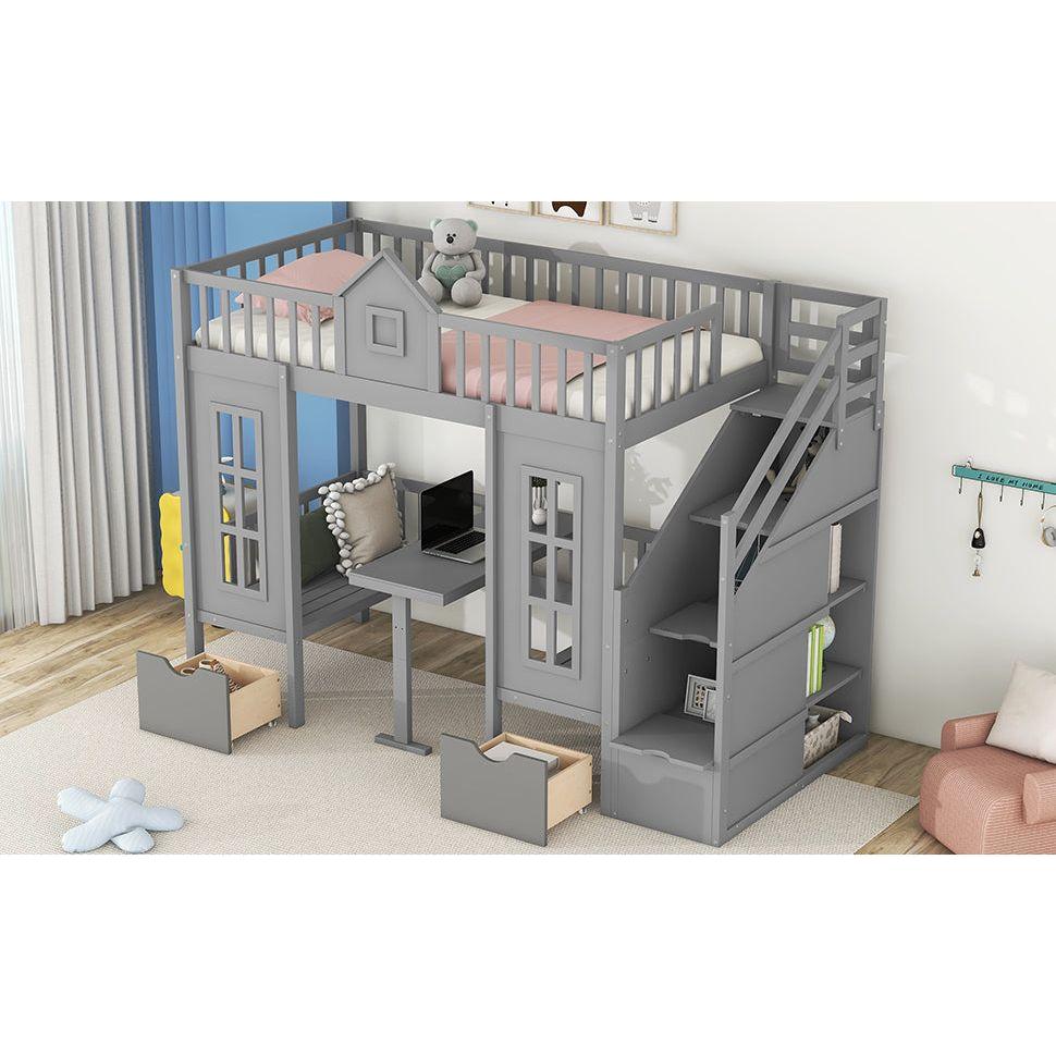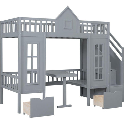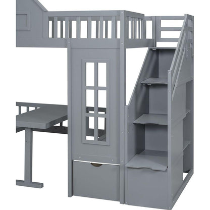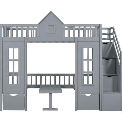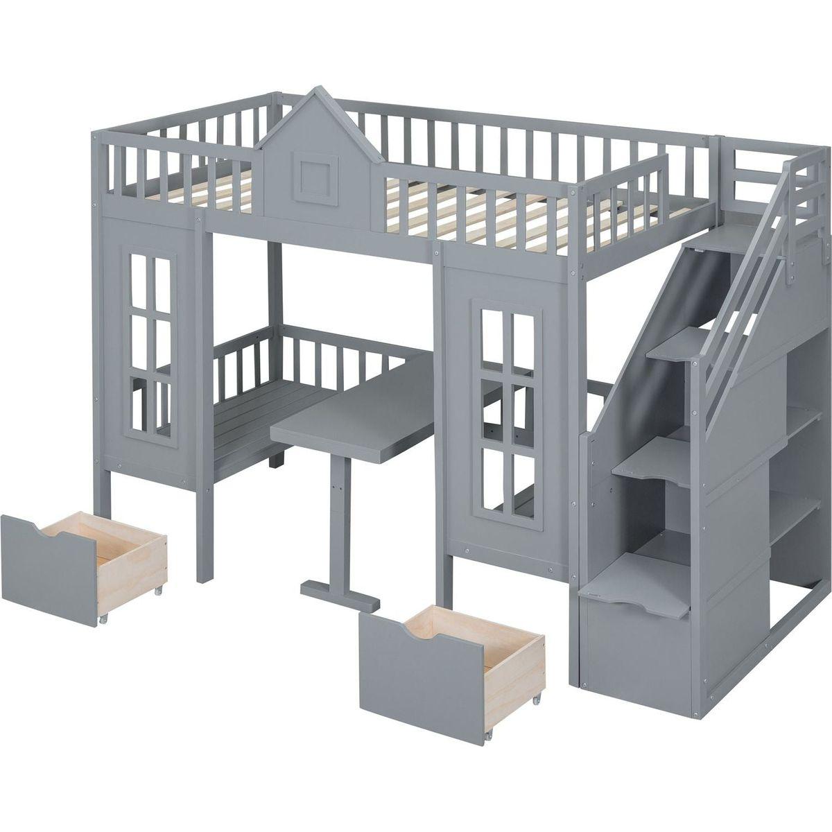 Twin-Over-Twin Bunk Bed with Changeable Table, Bunk Bed Turn into Upper Bed and Down Desk -Gray