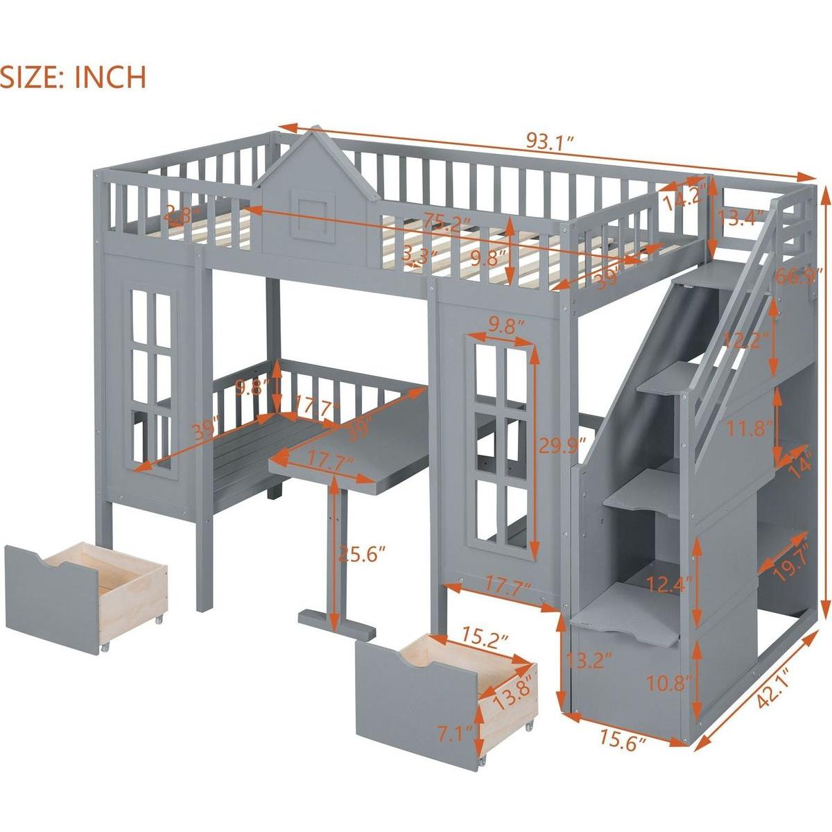- [Playhouse Inspired] We offer three different color schemes. Which you can chose most suitable color matching your bedroom design.With classic design bunk bed creates a fun and adorable space that not only serves as a comfortable sleeping area but also double as a space for you to play and have fun.