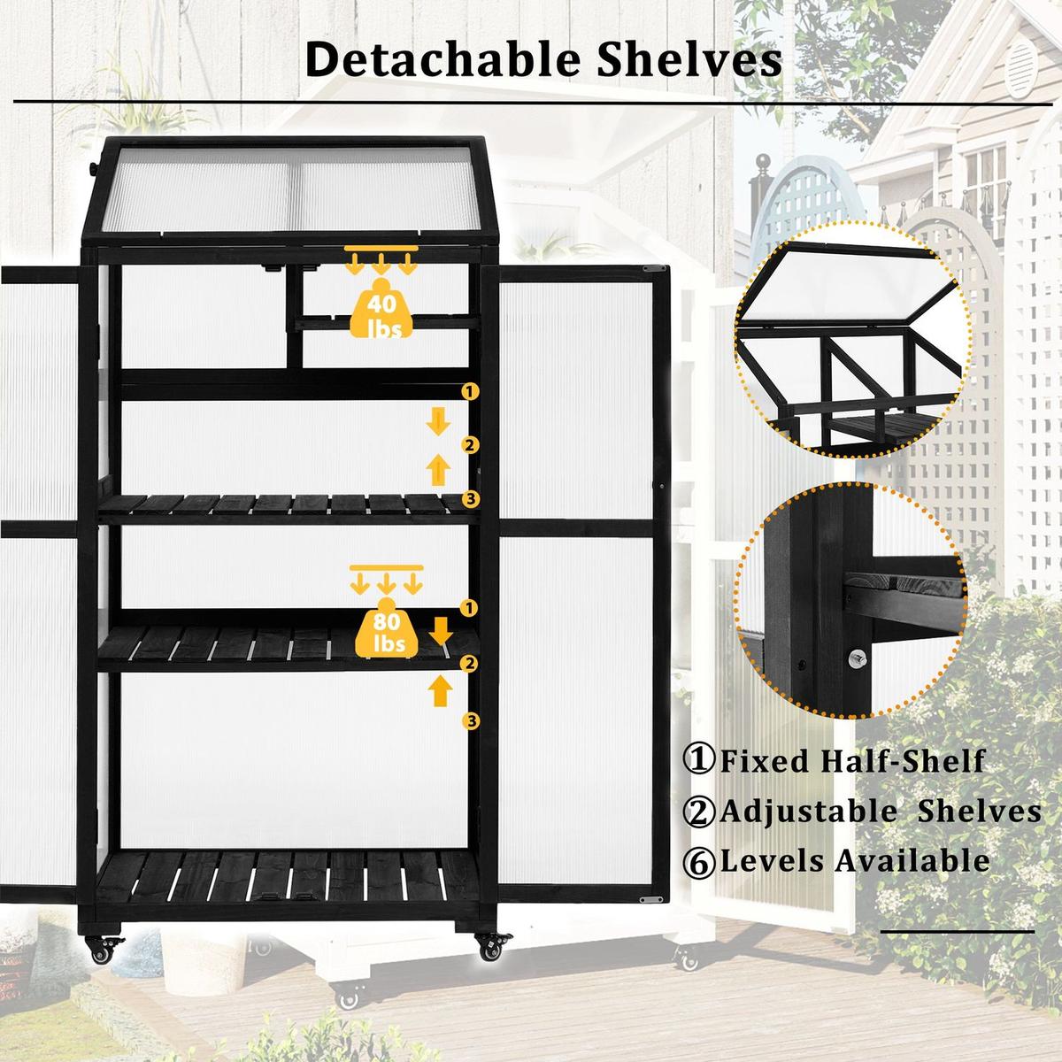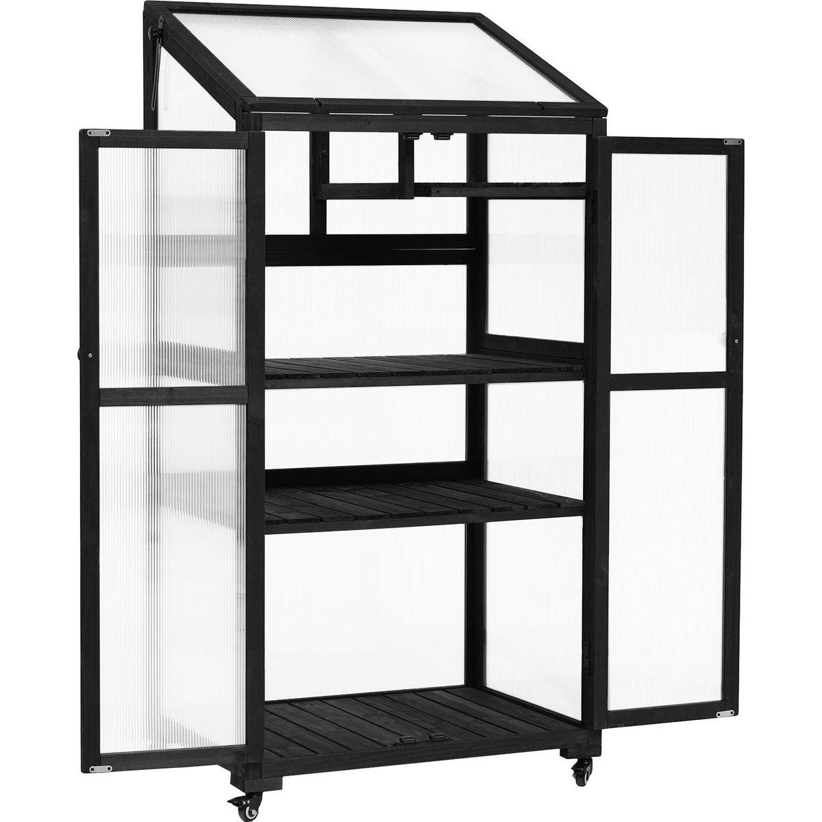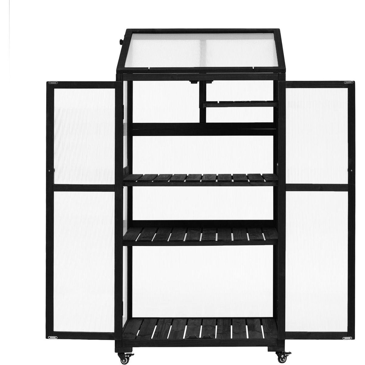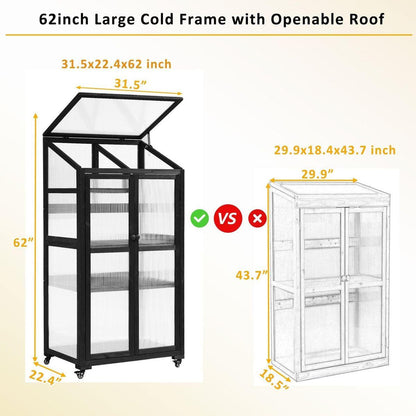 62inch Height Wood Large Greenhouse Balcony Portable Cold Frame with Wheels and Adjustable Shelves for Outdoor Indoor Use, Black