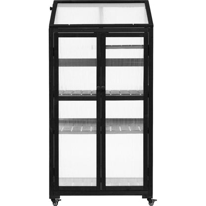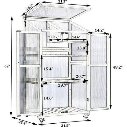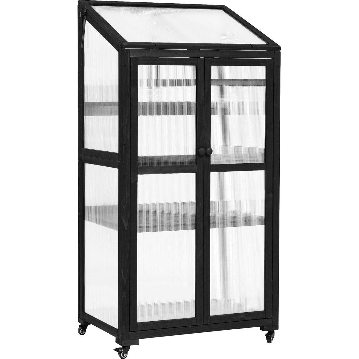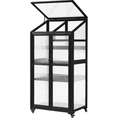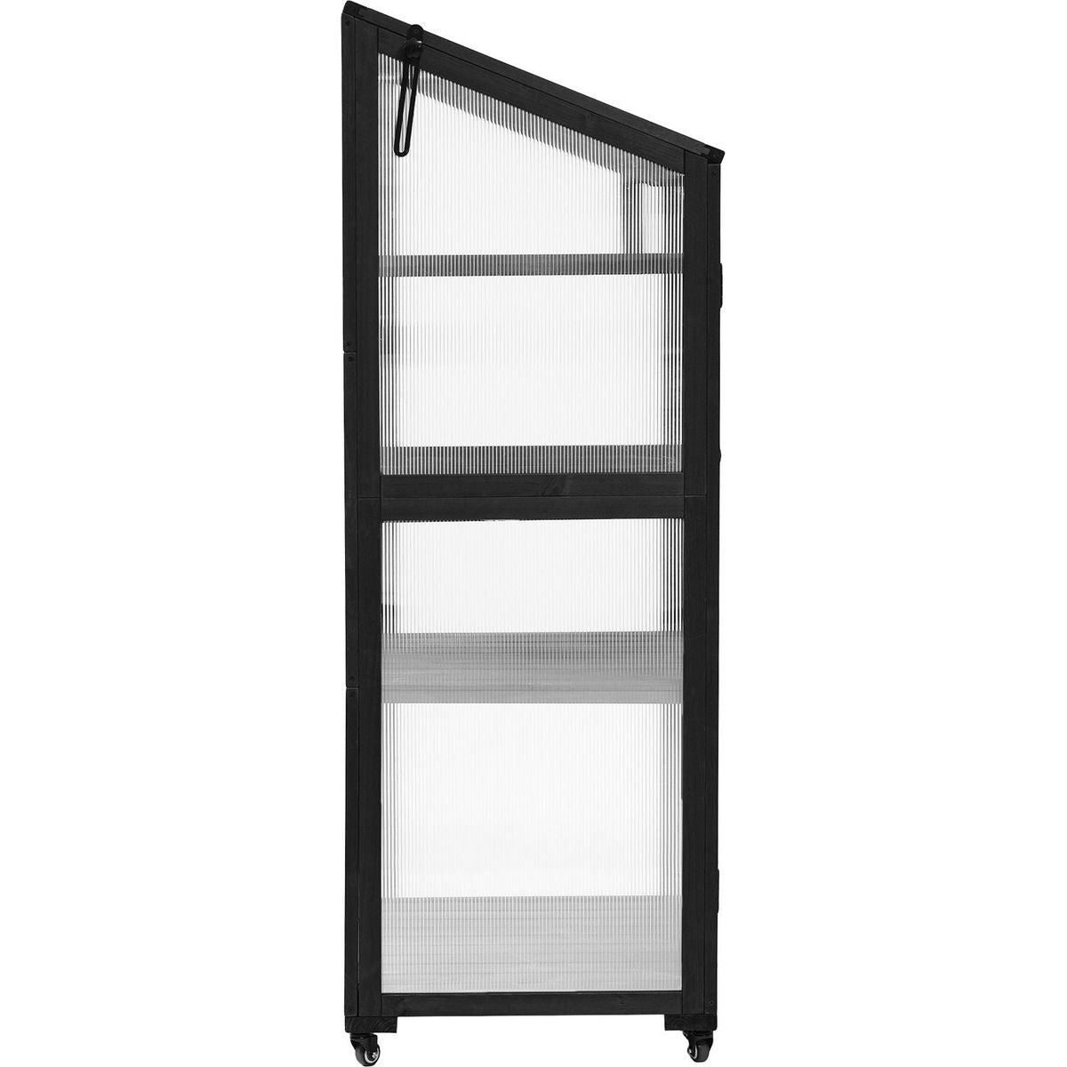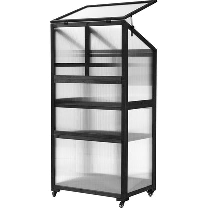 62inch Height Wood Large Greenhouse Balcony Portable Cold Frame with Wheels and Adjustable Shelves for Outdoor Indoor Use, Black