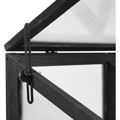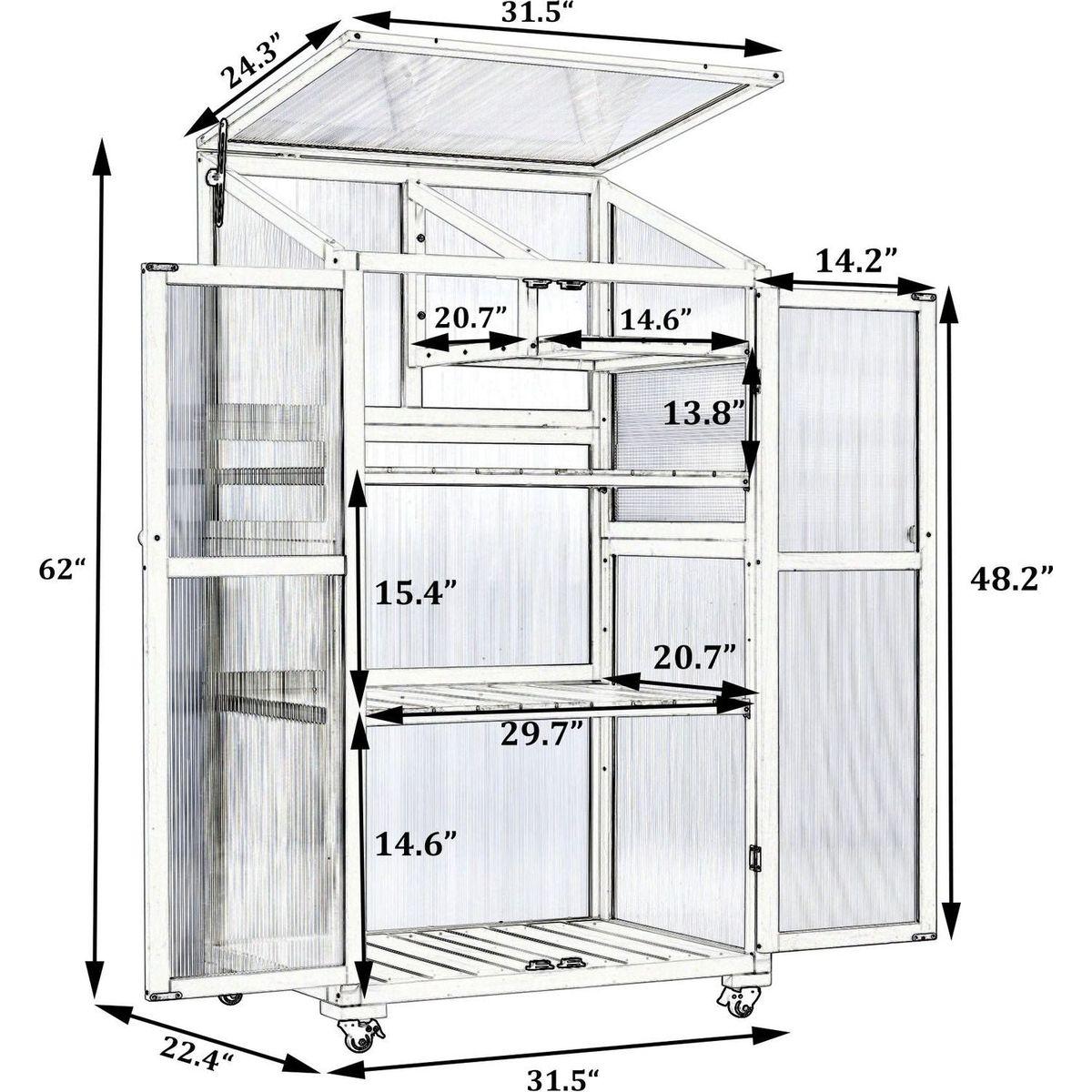 - [Balcony Wood Greenhouse] This mini greenhouse is made of fir wood and polycarbonate panels. Compared with other wood cold frame, this one is larger and higher which the size is up to 31.5x22.4x62inch(LXWXH)so that you can have more plants without taking up so much places in your balcony.