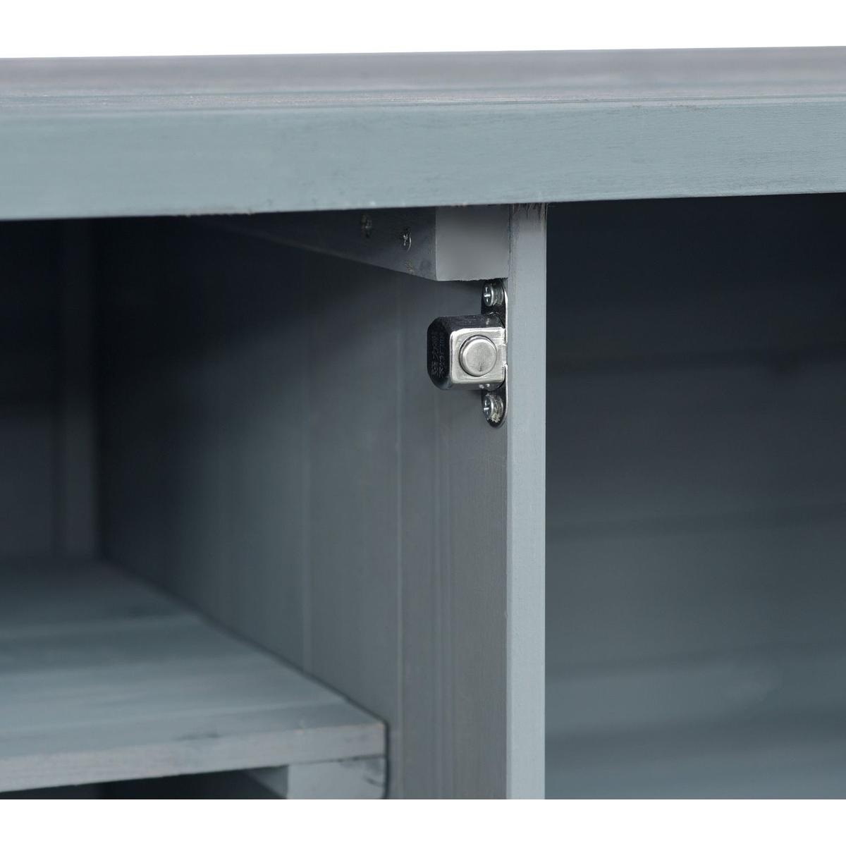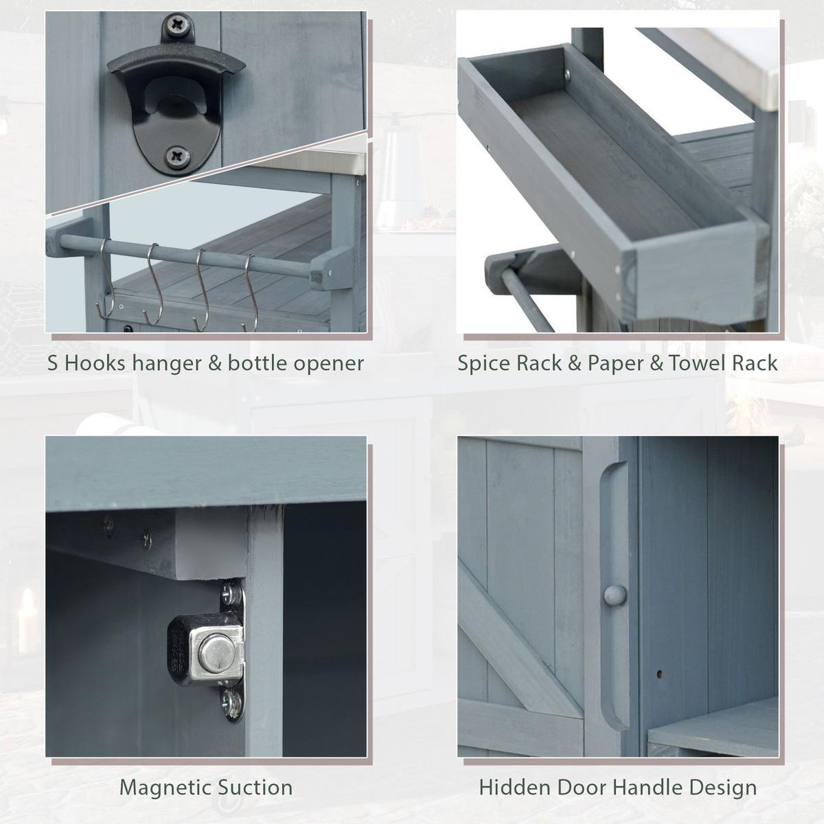 Outdoor Kitchen Island, Rolling Bar Cart & Storage Cabinet, Farmhouse Solid Wood Outdoor Grill Table with Stainless Steel Top, Spice Rack, Towel Rack for Kitchen & BBQ, Grey Blue