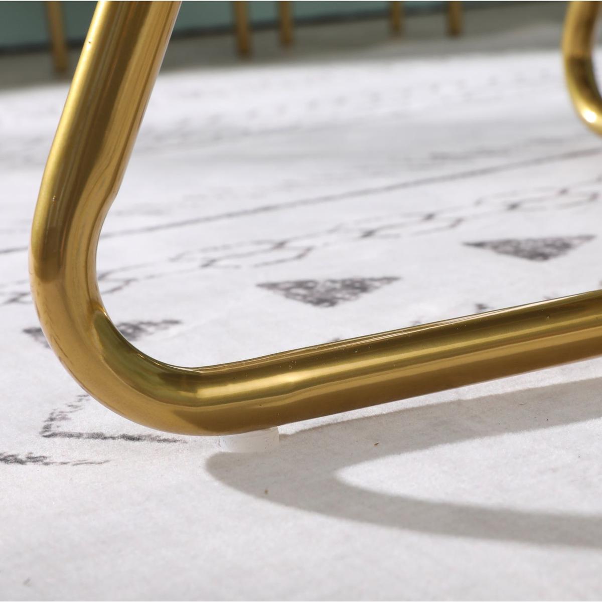 - Sturdy metal sled frame finished in gold tone, plastic floor protector underneath to make your floor scratch-free