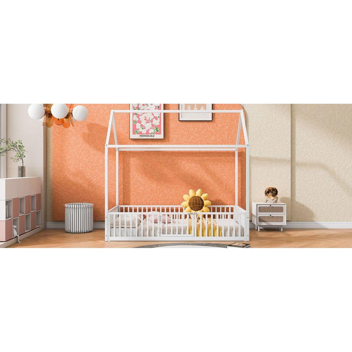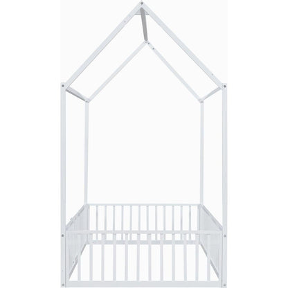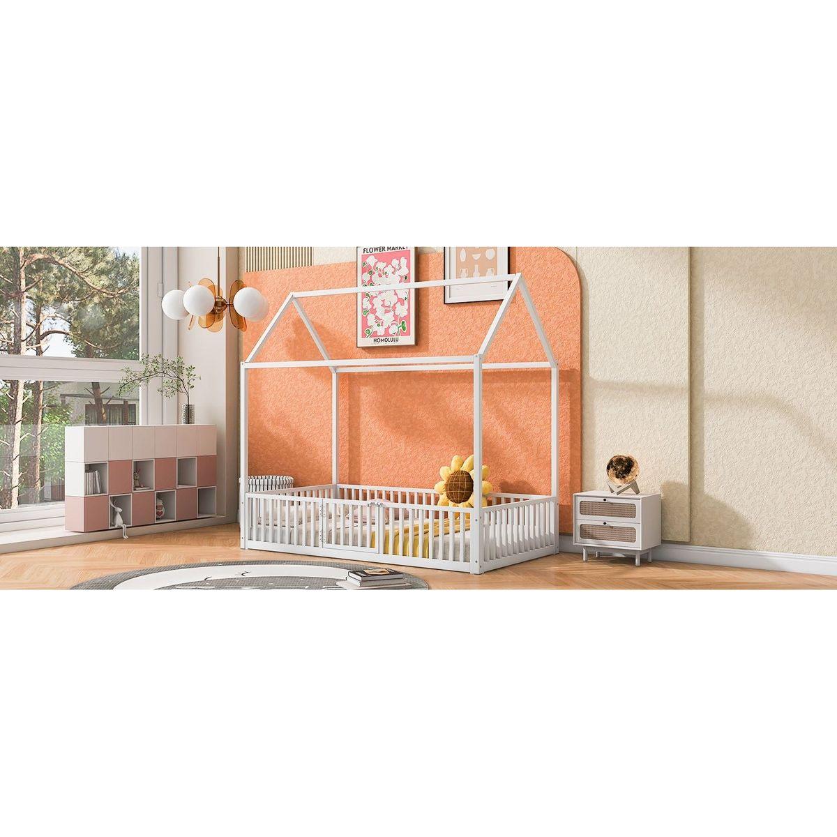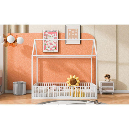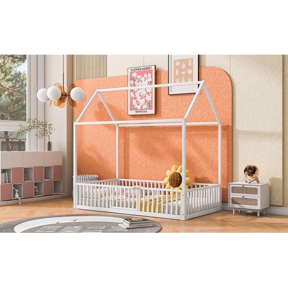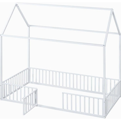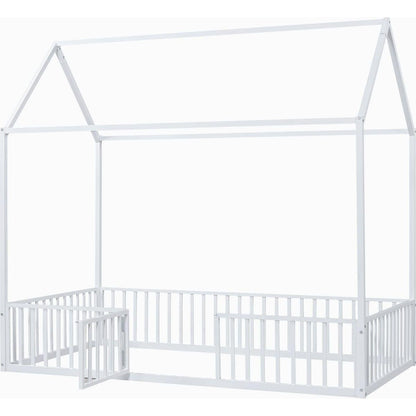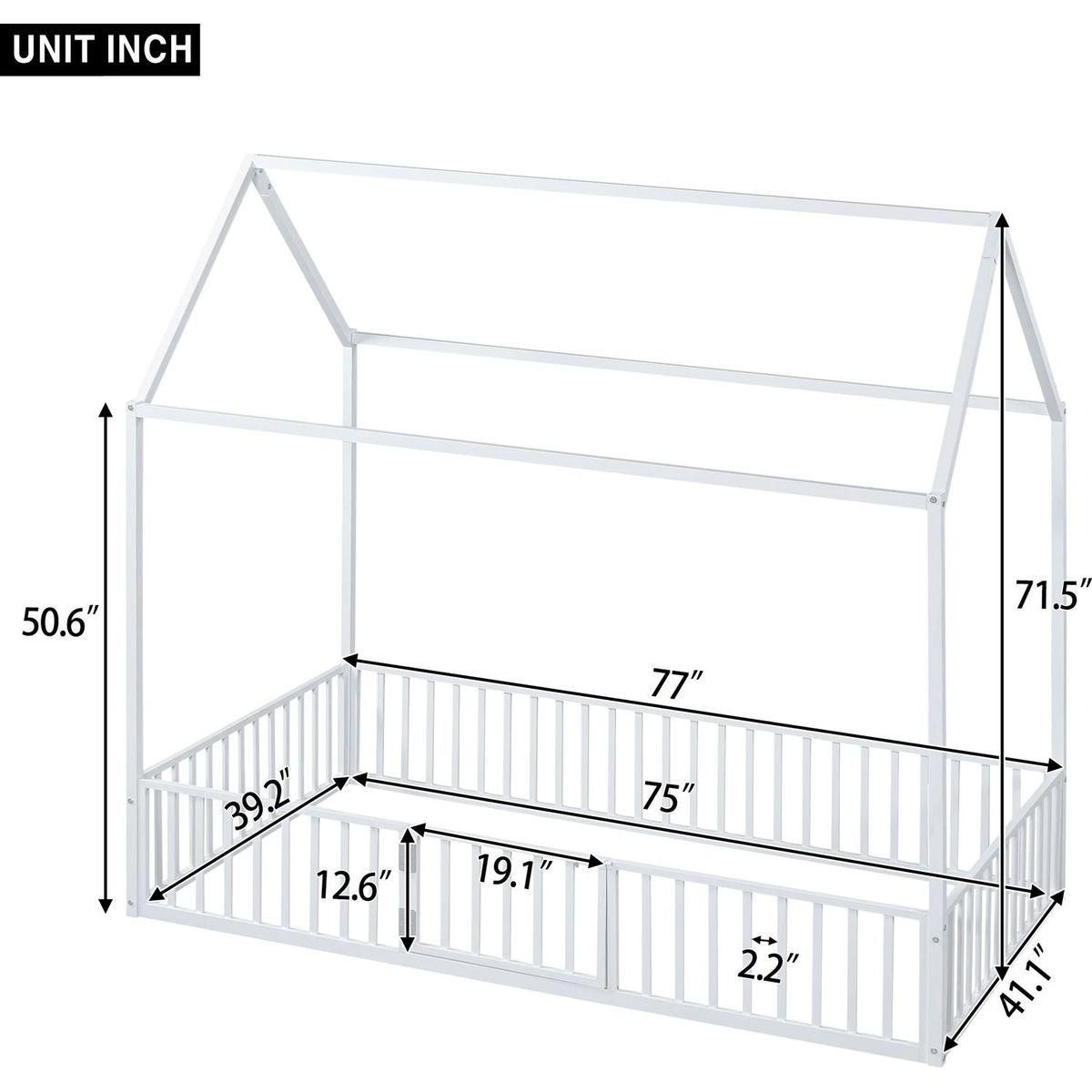 - [House-Shaped Design] The house bed featuring a classic house-shaped, this imaginative bed is equipped with a whimsical sky roof and uniquely shaped guardrail for a fun bedroom environment that your child will love.