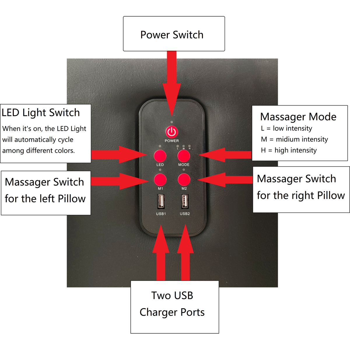 - Two sets of vibration motors are built on both sides of the head of the bed, and the intensity of strong, medium and weak three gears can be adjustable pulse,30 minutes regular massage.