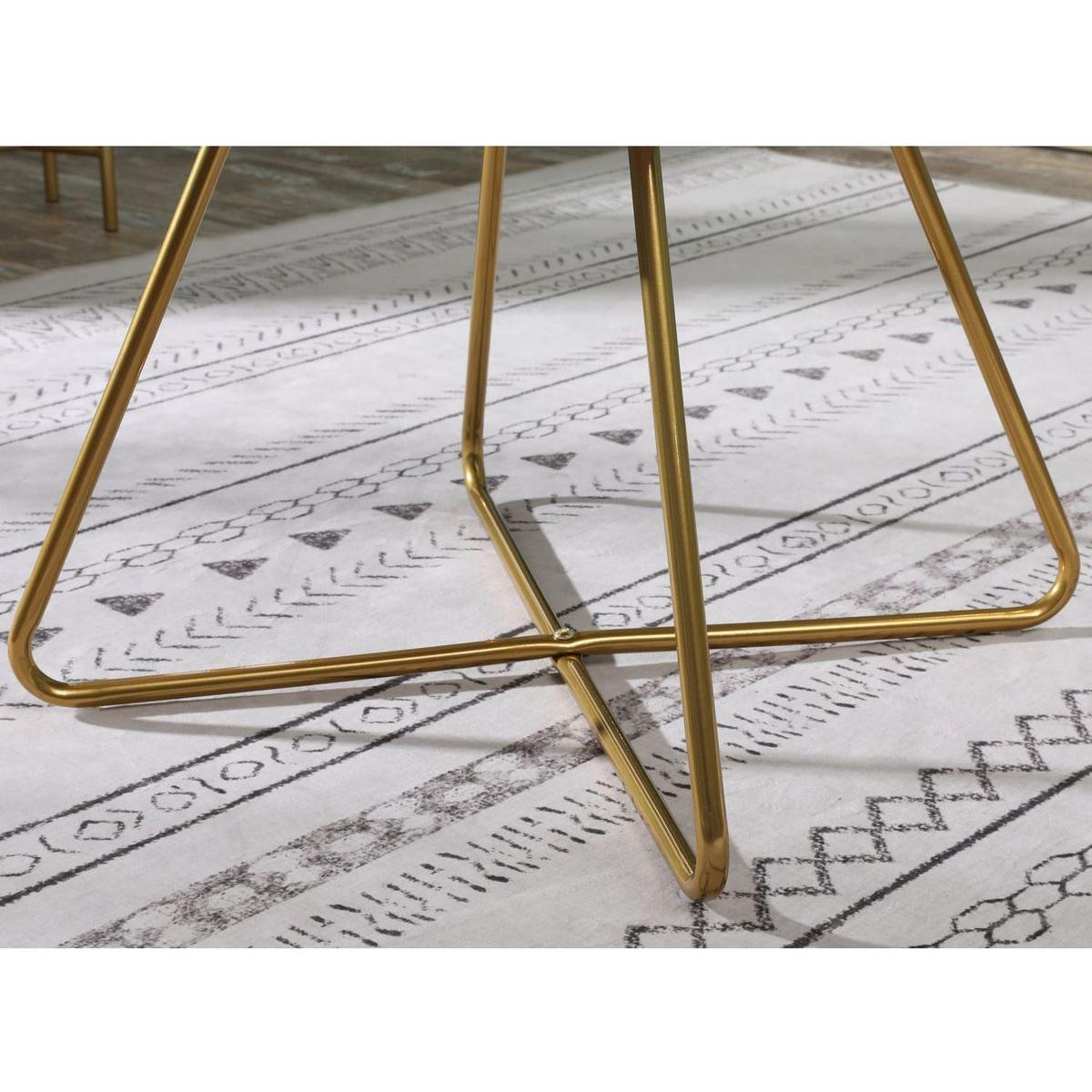 - Sturdy metal sled frame finished in gold tone, plastic floor protector underneath to make your floor scratch-free
