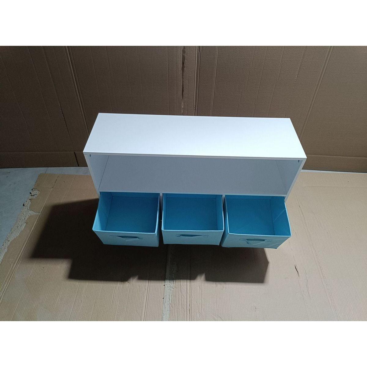 Kids bookcase with Collapsible Fabric Drawers, Children's Book Display, Toy Storage Cabinet Organizer, White/Blue