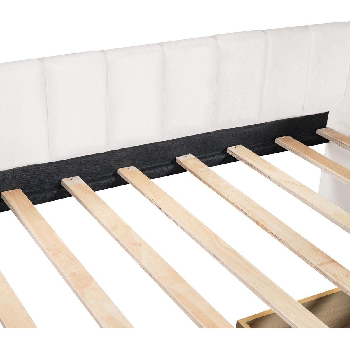 Twin Size Upholstered Daybed with Ergonomic Design Backrest and 2 Drawers, Beige