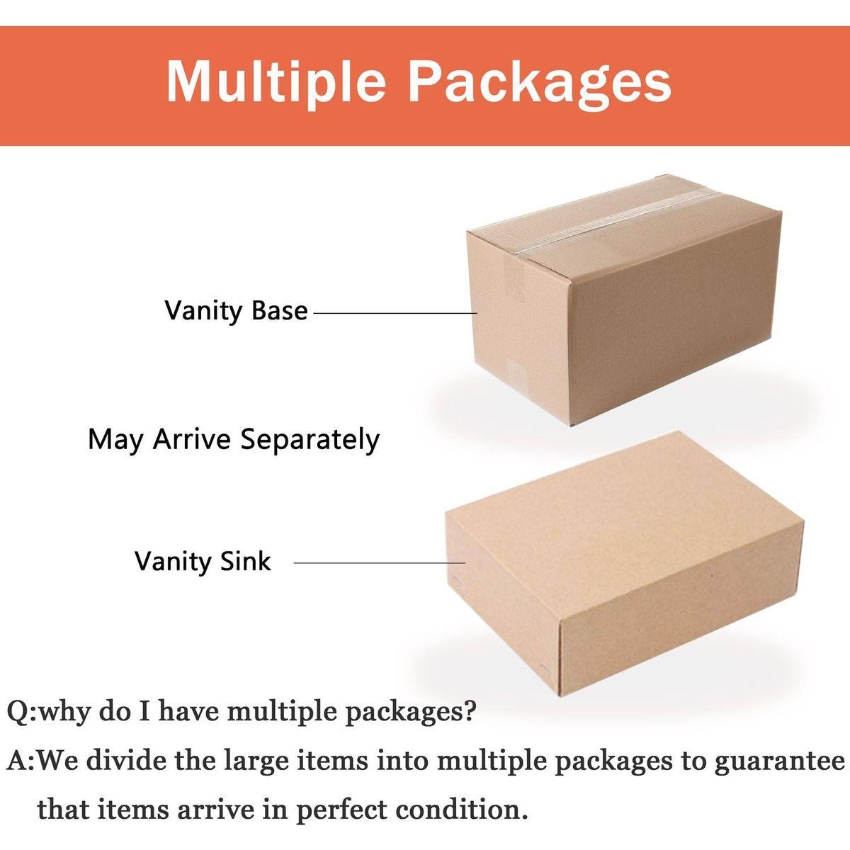 Packages:The vanity and ceramic sink are shipped in two separate packages.(Probably will be delivered at different time,please notice and hope to get your understanding,thx)
