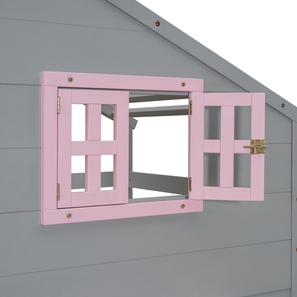 - [Playhouse-inspired Style]Featuring a pitched roof, a shelf and a square designed window, this unique and intricately designed bunk bed creates a fun and adorable space that not only serves as a comfortable sleeping area but also double as a space for your family to play and have fun.