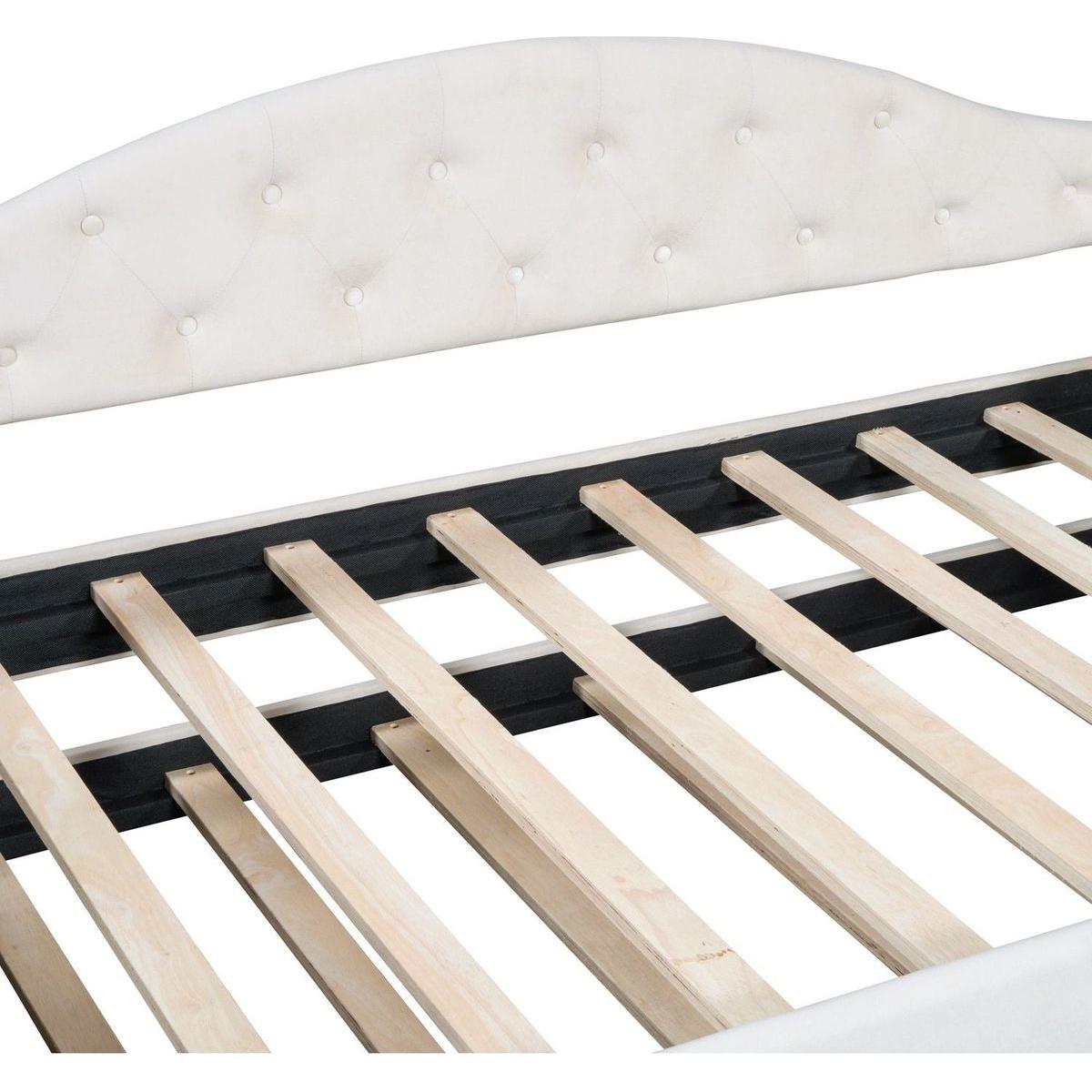 - [Elegant design] This daybed features an elegant and generous design with tufted detailing, upholstered in luxurious velvet fabric. It comes with a backrest and two armrests. The backrest features a tufted design. With its stylish appearance and functional design, this daybed is an excellent addition to any modern living space.