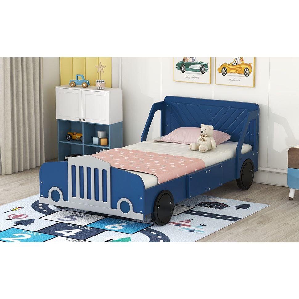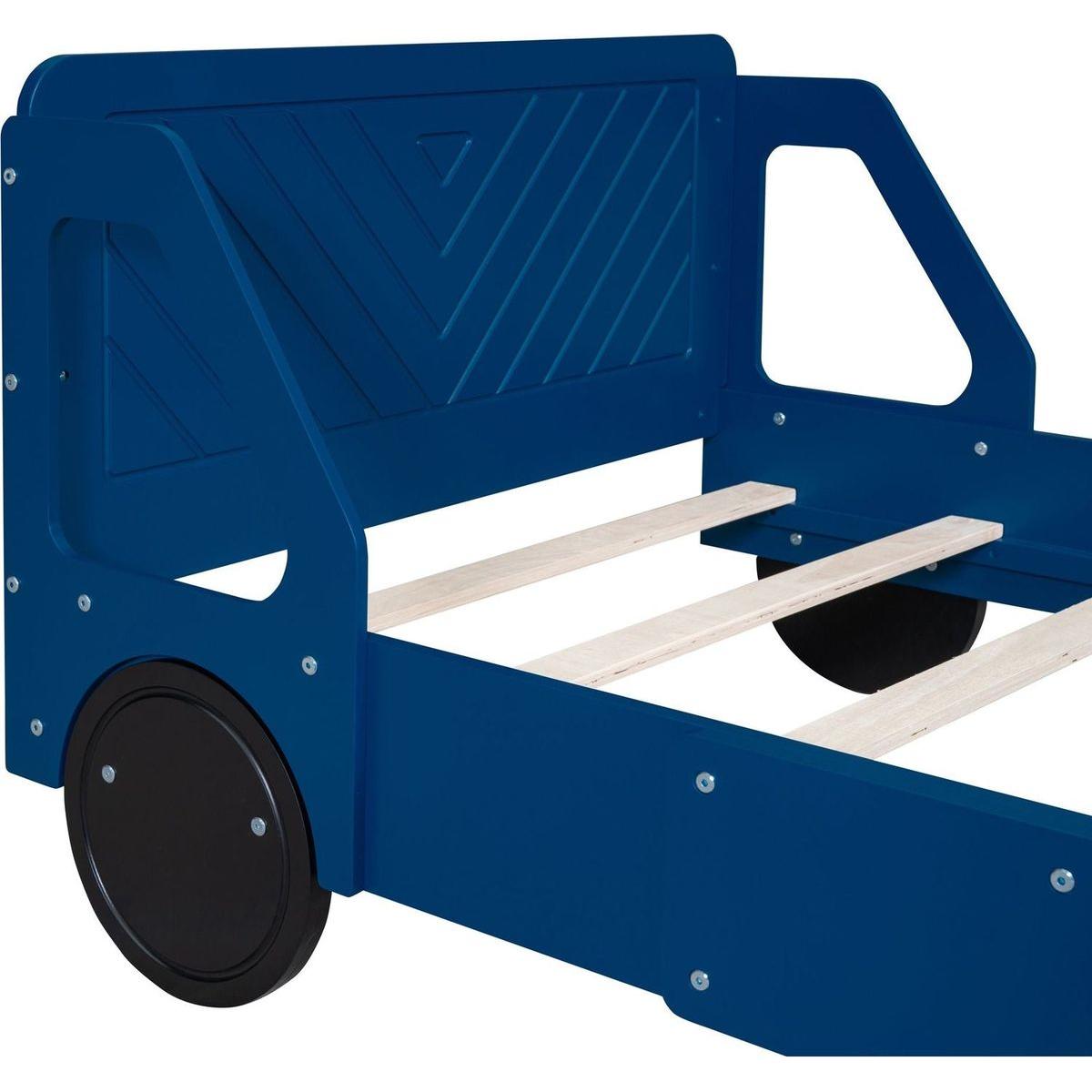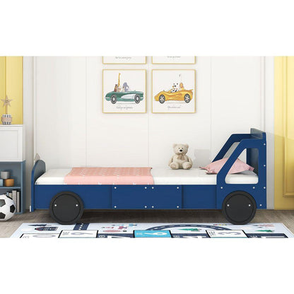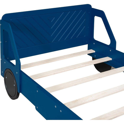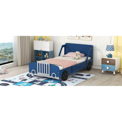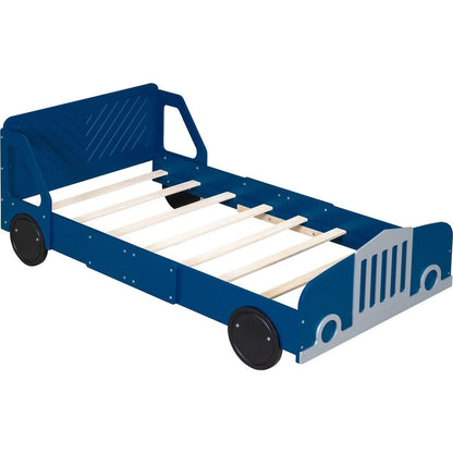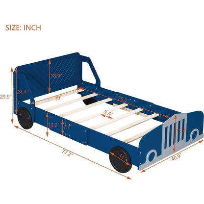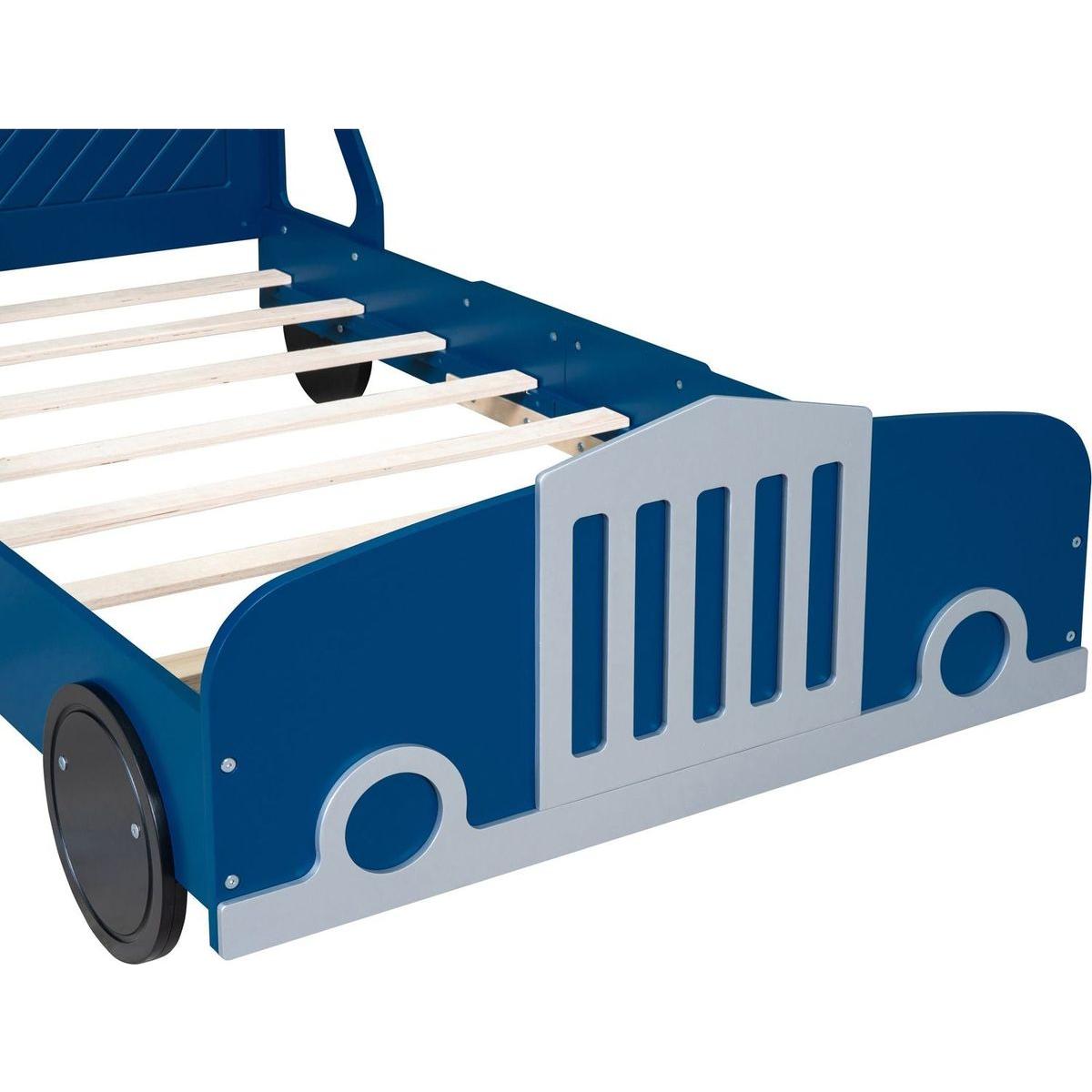 Twin Size Car-Shaped Platform Bed with Wheels,Blue