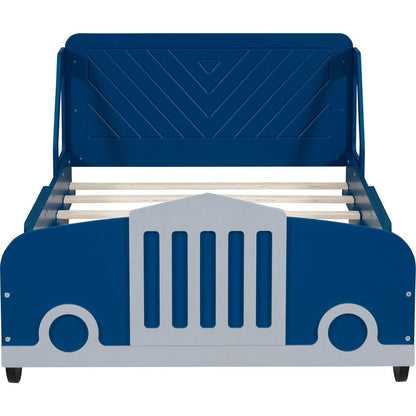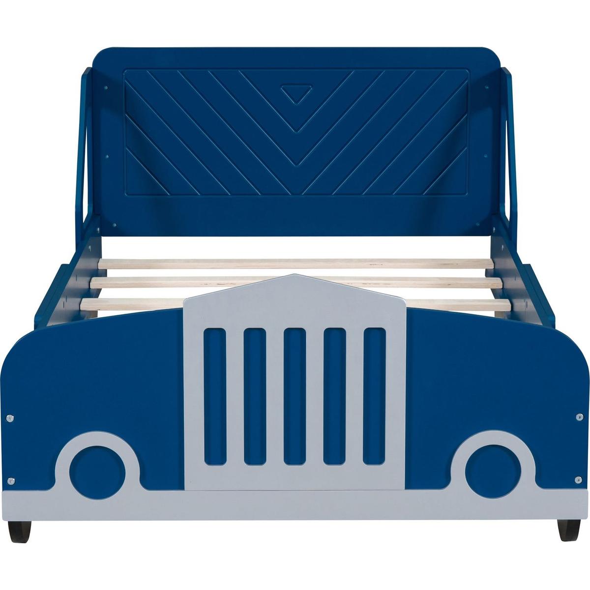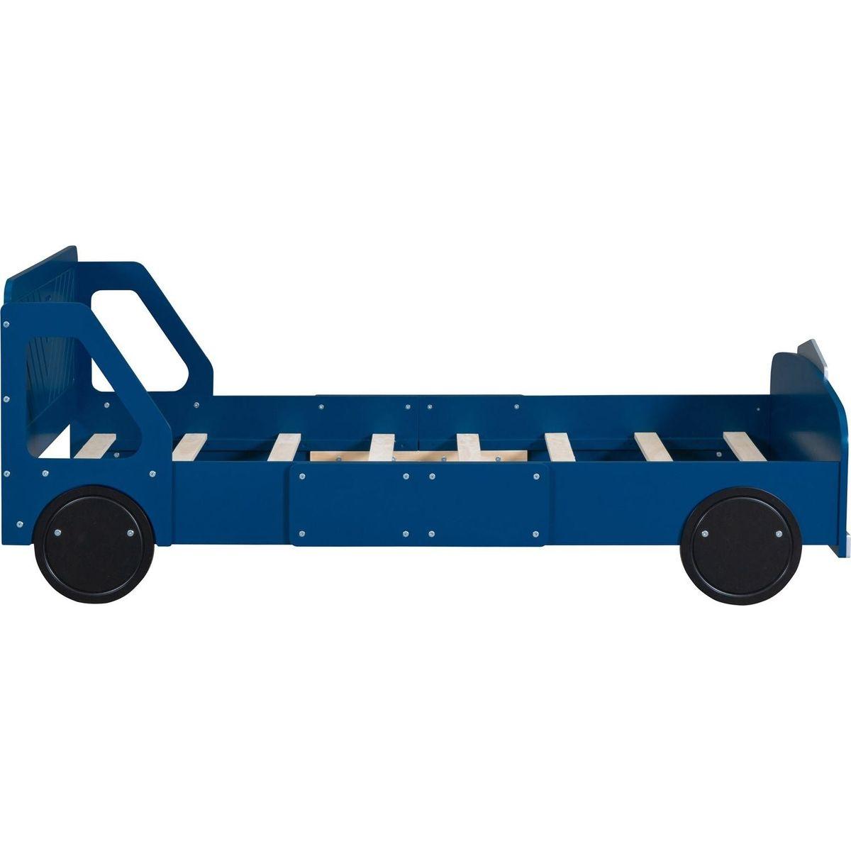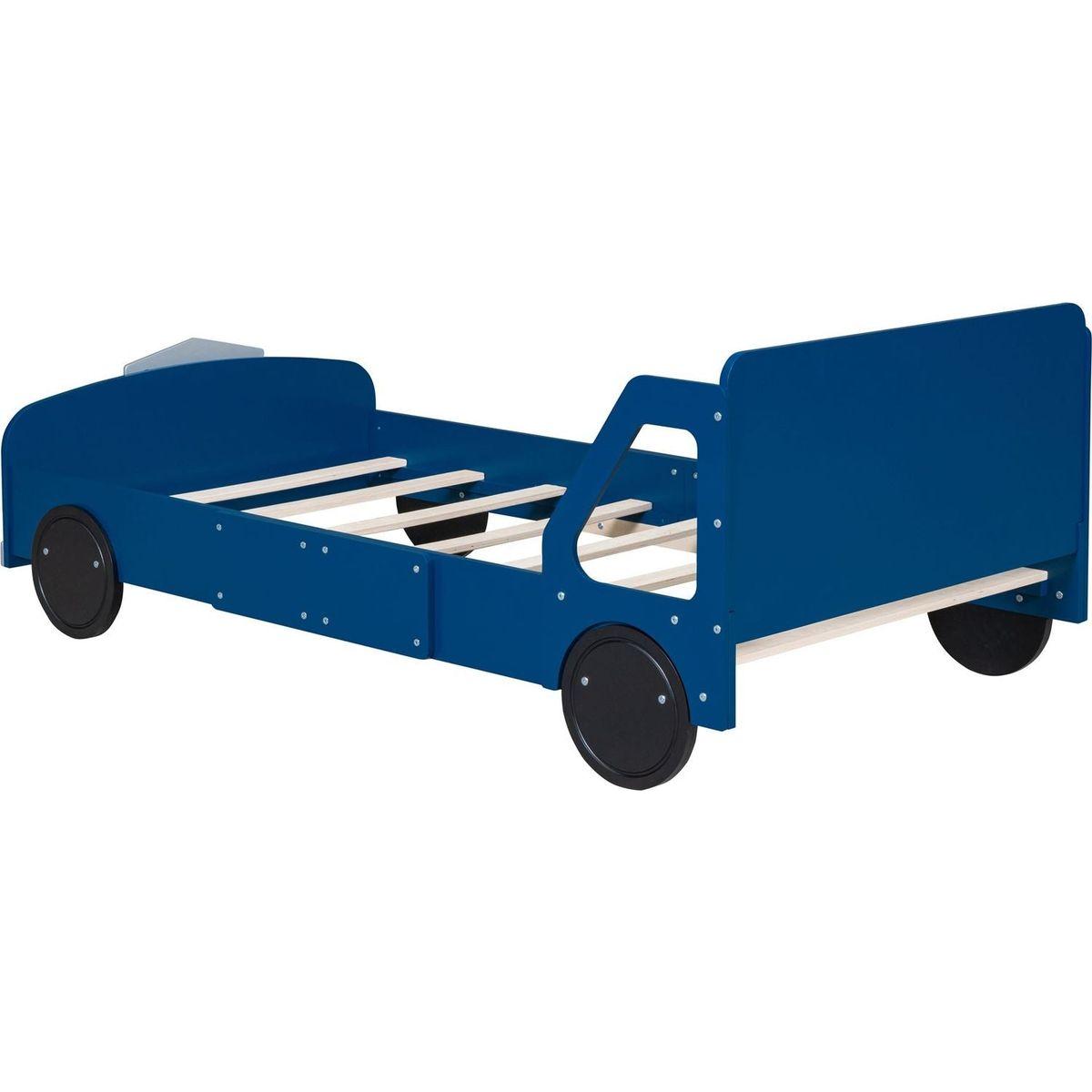 Twin Size Car-Shaped Platform Bed with Wheels,Blue