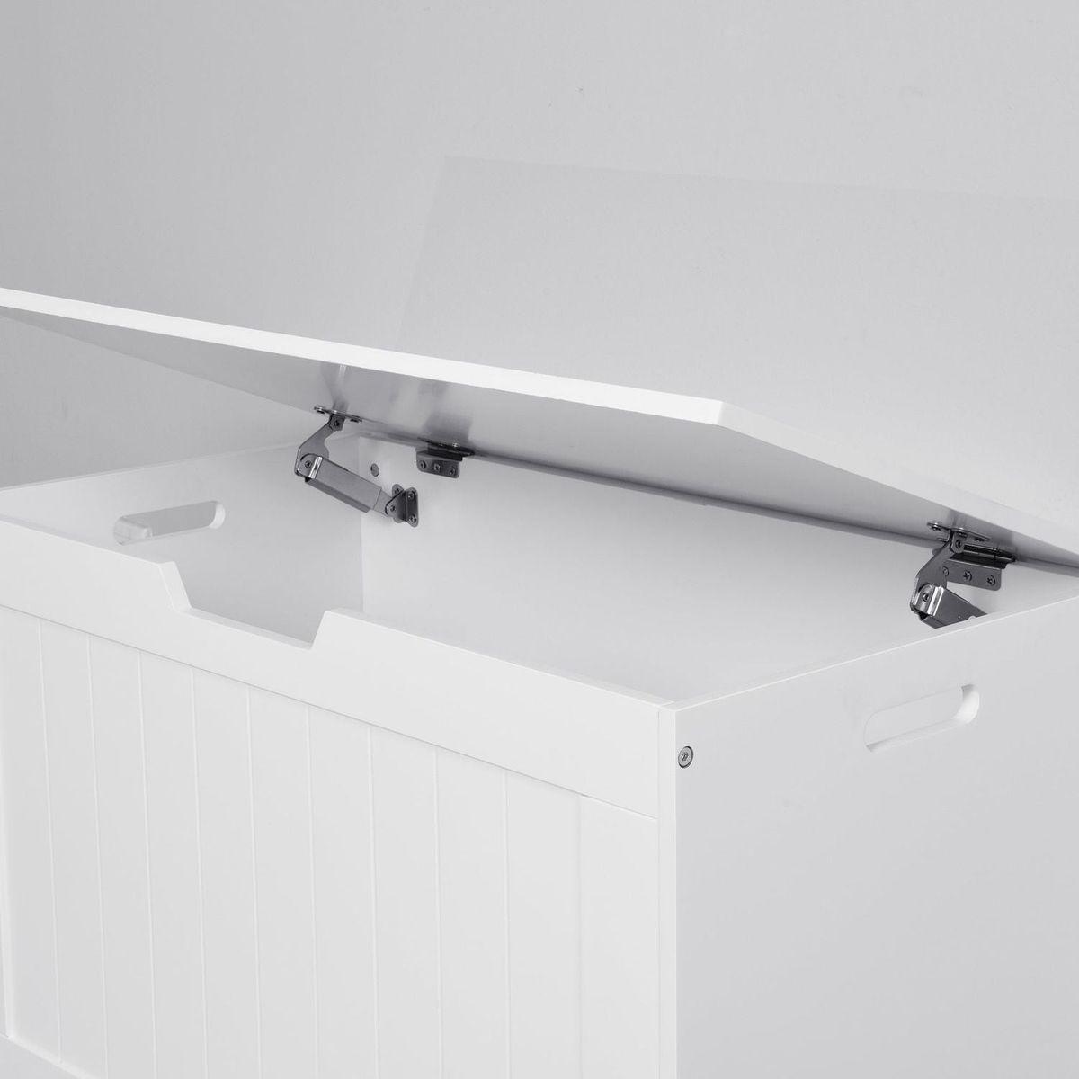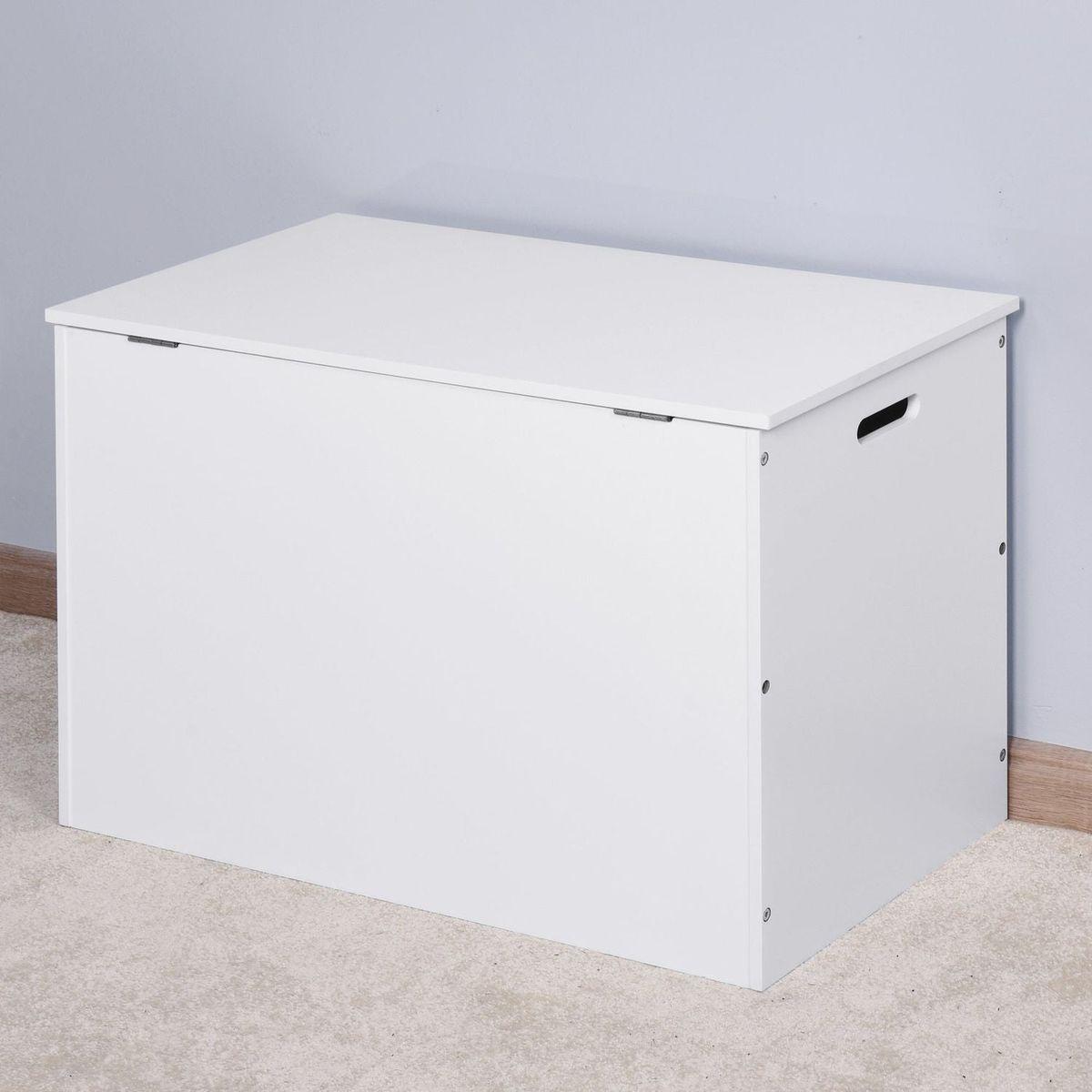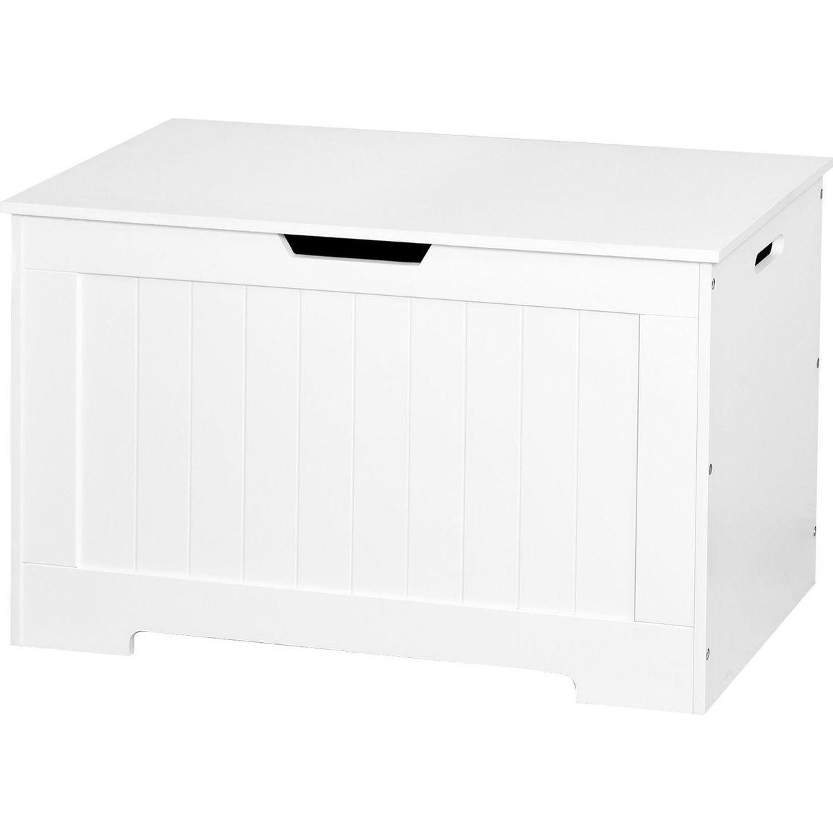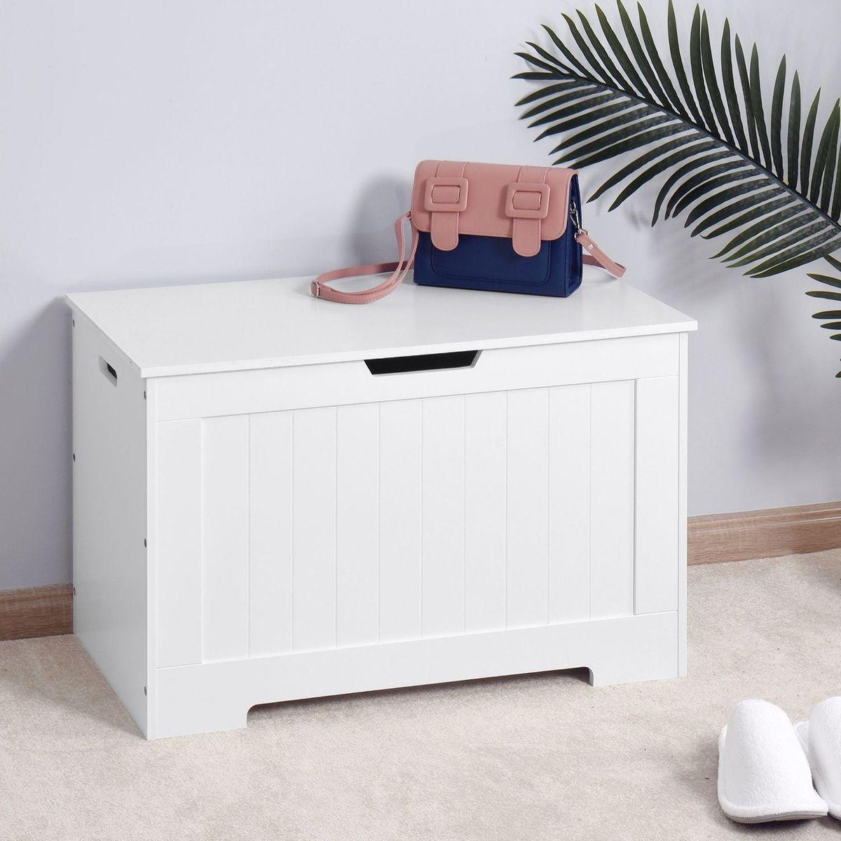 White Lift Top Entryway Storage Chest/Bench with 2 Safety Hinge, Wooden Toy Box