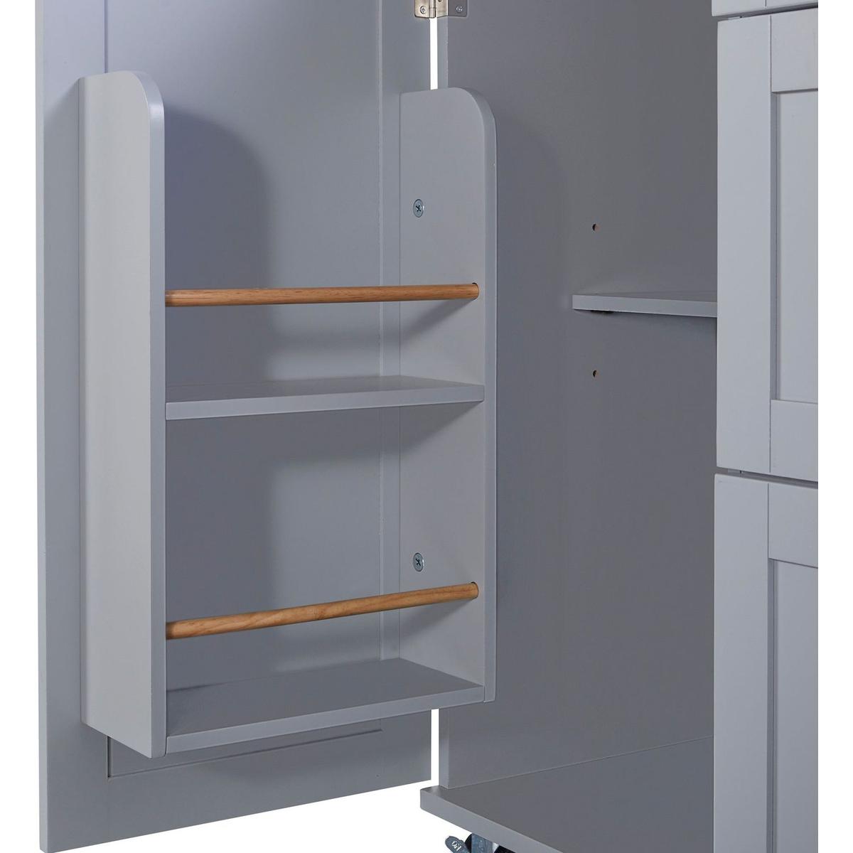 This 43" D kitchen island is meticulously designed to optimize functionality and organization in your culinary space. Boasting three drawers and two slide-out shelves, it offers abundant storage capacity for all your essential items. Bid farewell to a cluttered countertop as this cart ensures meticulous placement of everything, while also providing additional room for pots, pans, utensils, small appliances, and pantry necessities.