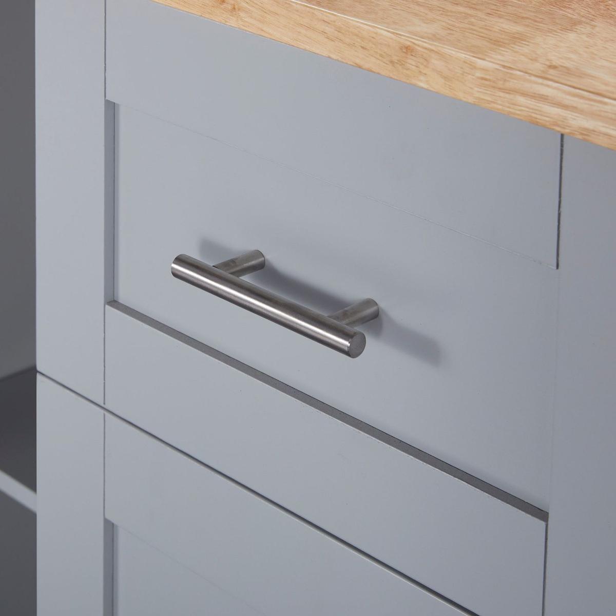 Rolling Kitchen Island with Storage, Kitchen Cart with Rubber Wood Top, 3 Drawer, 2 Slide-Out Shelf and Internal Storage Rack, Kitchen Island on Wheels with Spice Rack & Tower Rack, Grey Blue