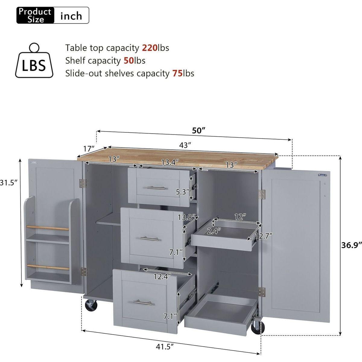 - [Slide-Out Cabinet Shelf Design] Our kitchen island is equipped with two convenient slide-out shelves that incorporate durable steel full-extension ball-bearing rails. This innovative design effectively resolves your storage challenges while optimizing the limited space available, allowing you to achieve impeccable organization and effortlessly access all your stored items. Say goodbye to untidy and cluttered shelves as you relish the convenience of our enhanced storage solution.