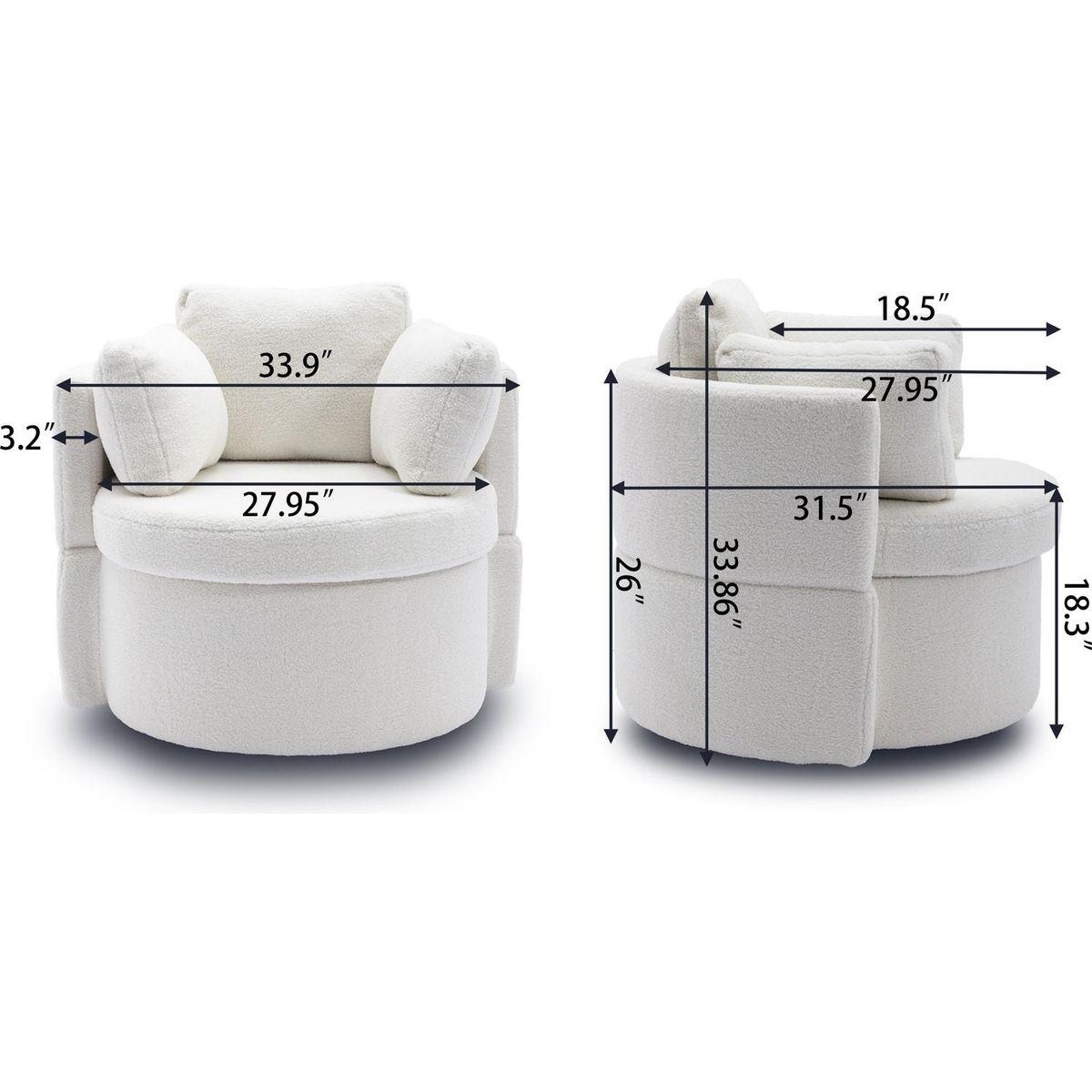 - Product Pomposition:Soft Teddy Fabric Material+Foam Filled+Wooden Frame+3 Throw Pillows+Storage+Black Point Round Swivel Base+Upholstered;