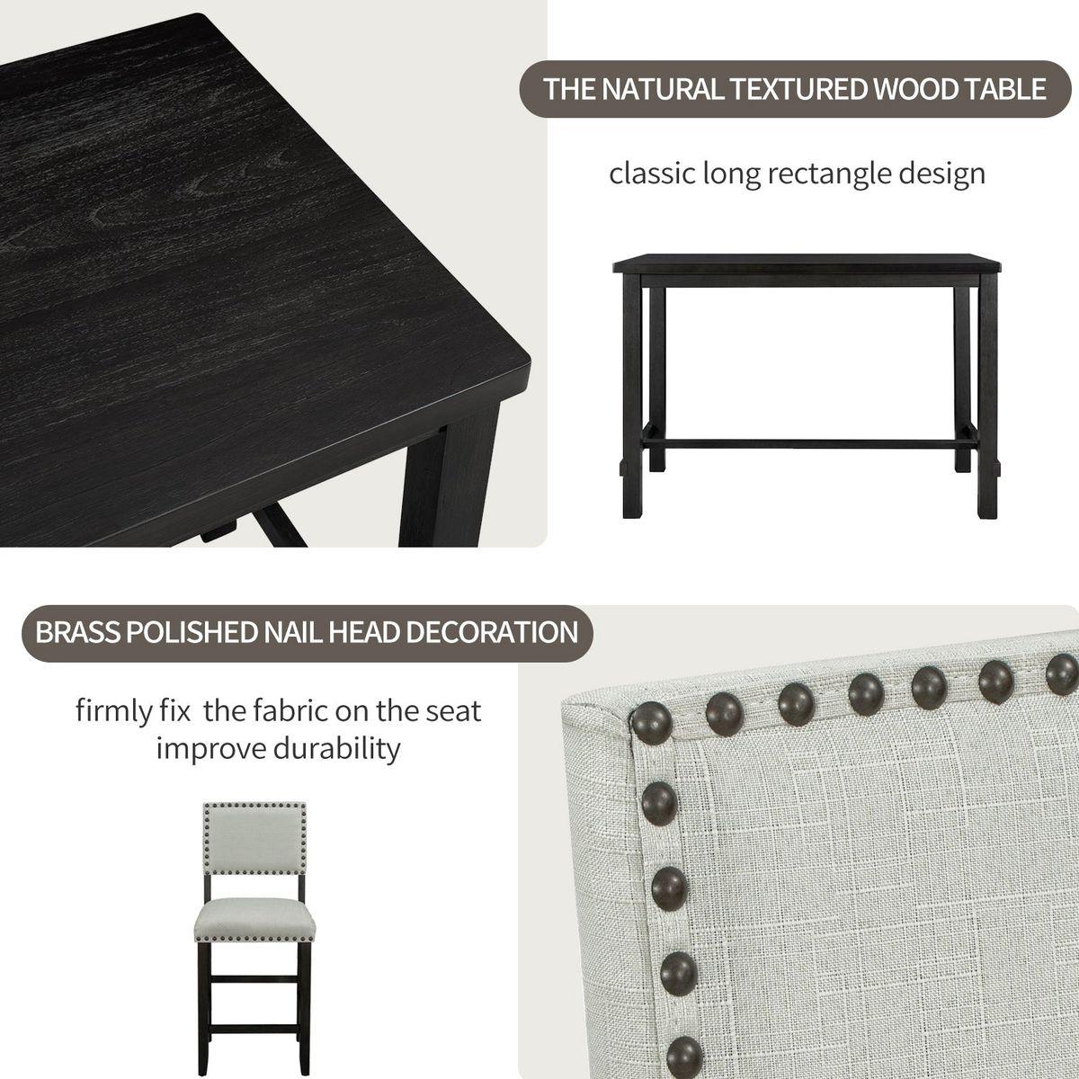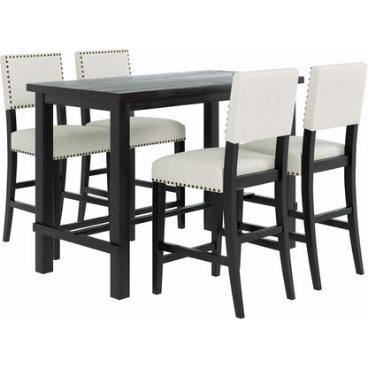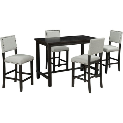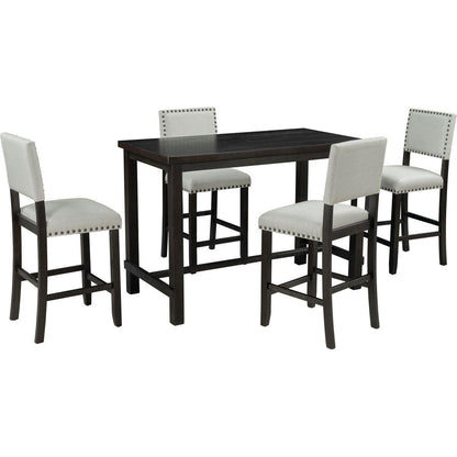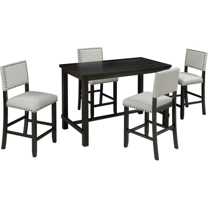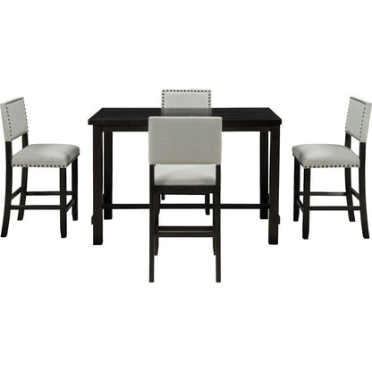 5-Piece Counter Height Dining Set, Classic Elegant Table and 4 Chairs in Espresso and Beige