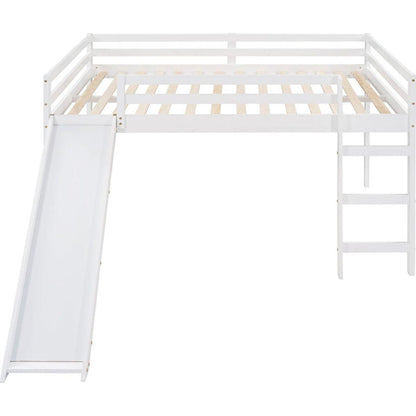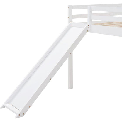 Loft Bed with Slide, Multifunctional Design, Full (White)