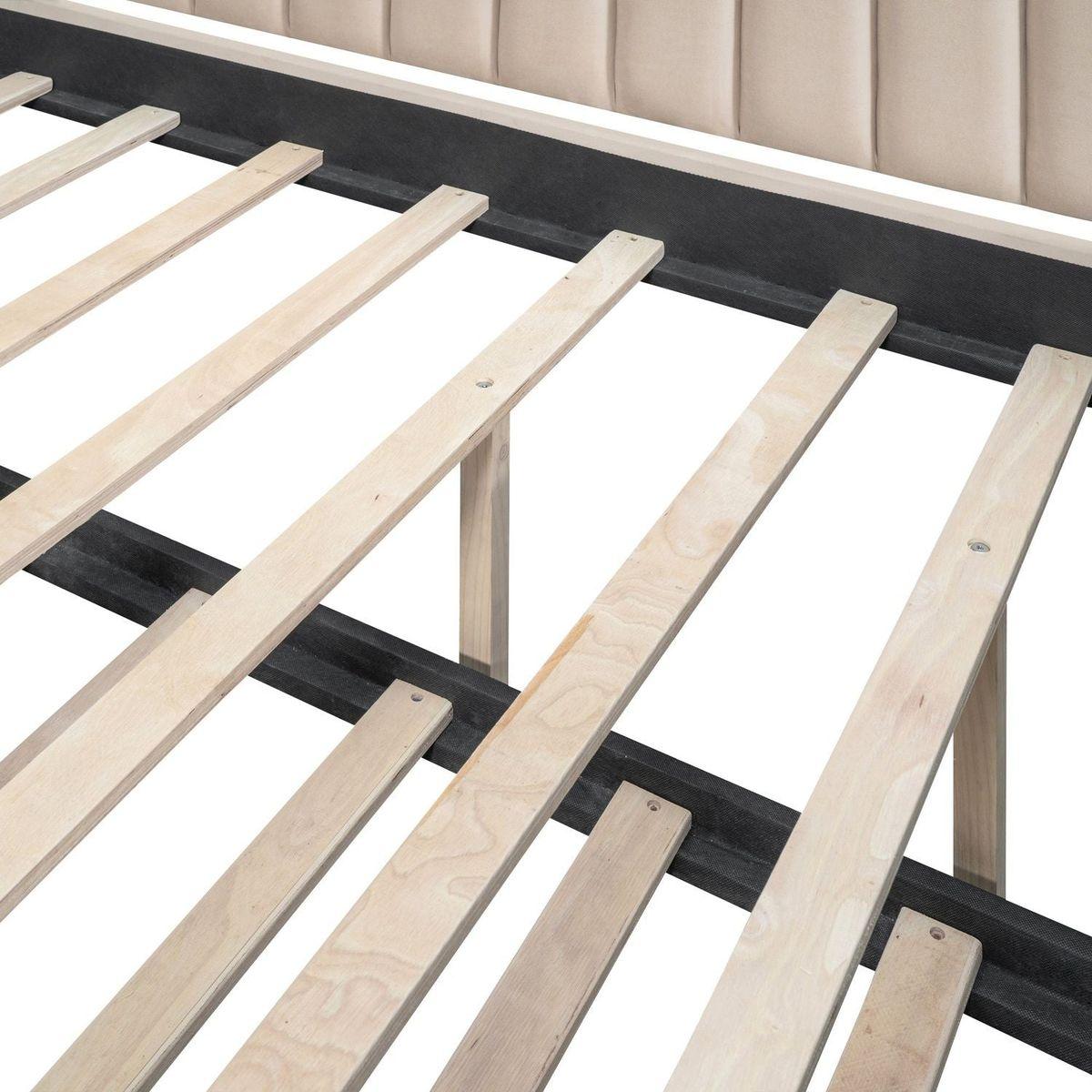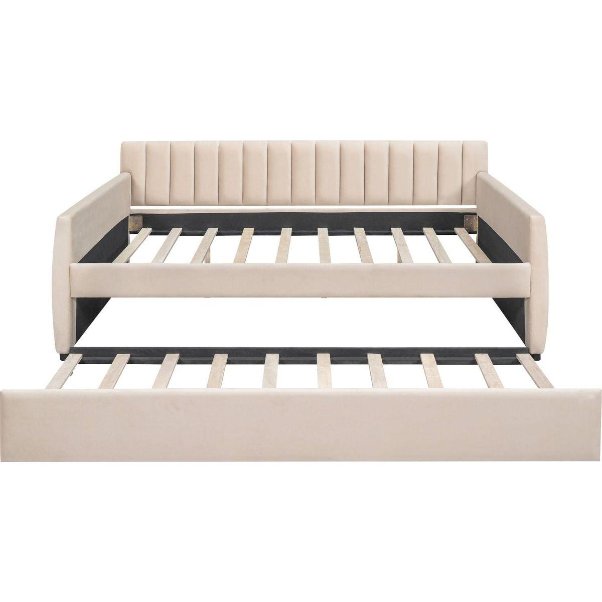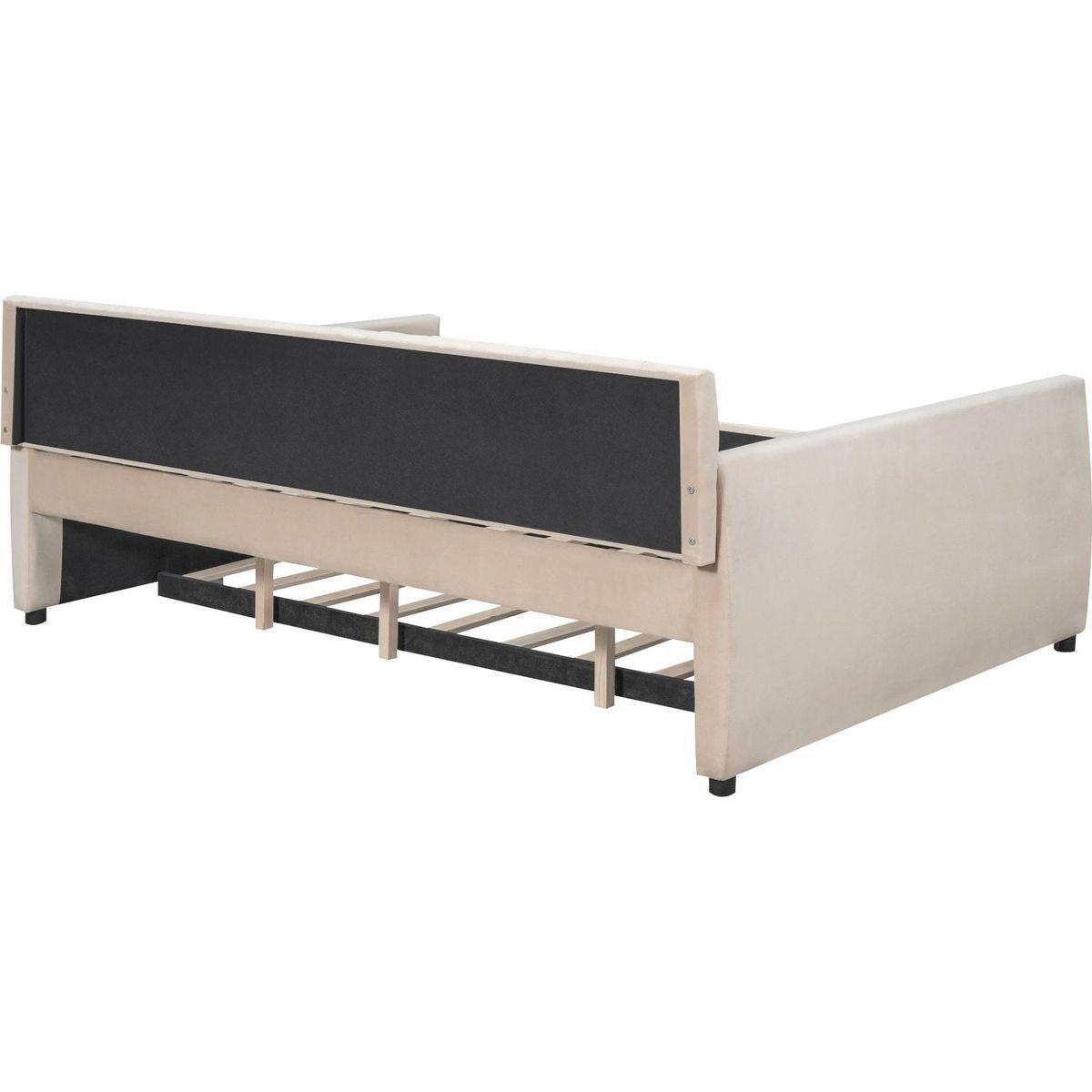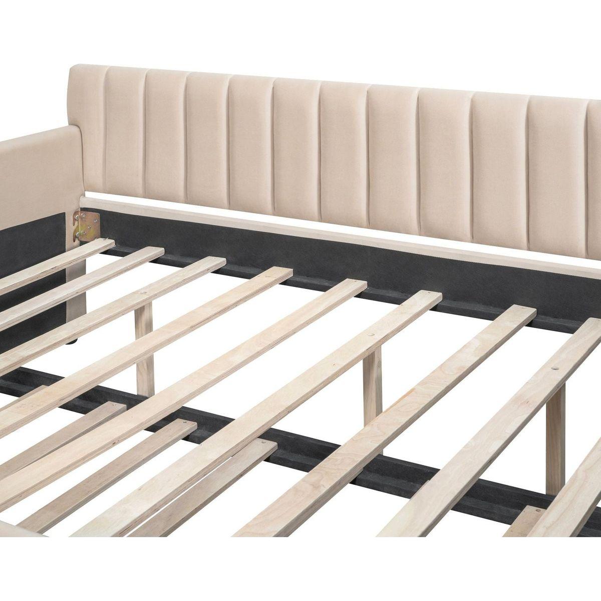Full Size Upholstered daybed with Trundle and Wood Slat Support, Beige