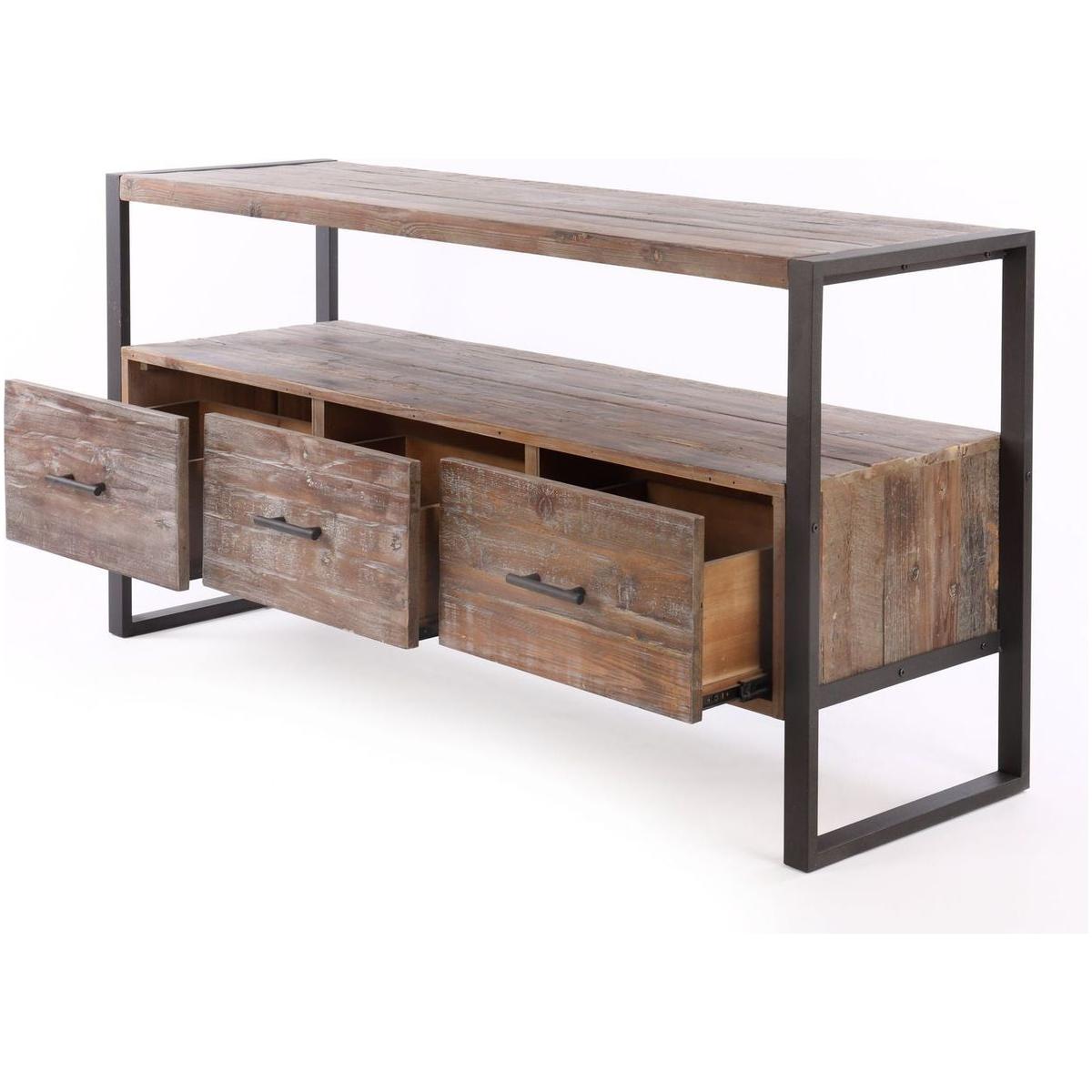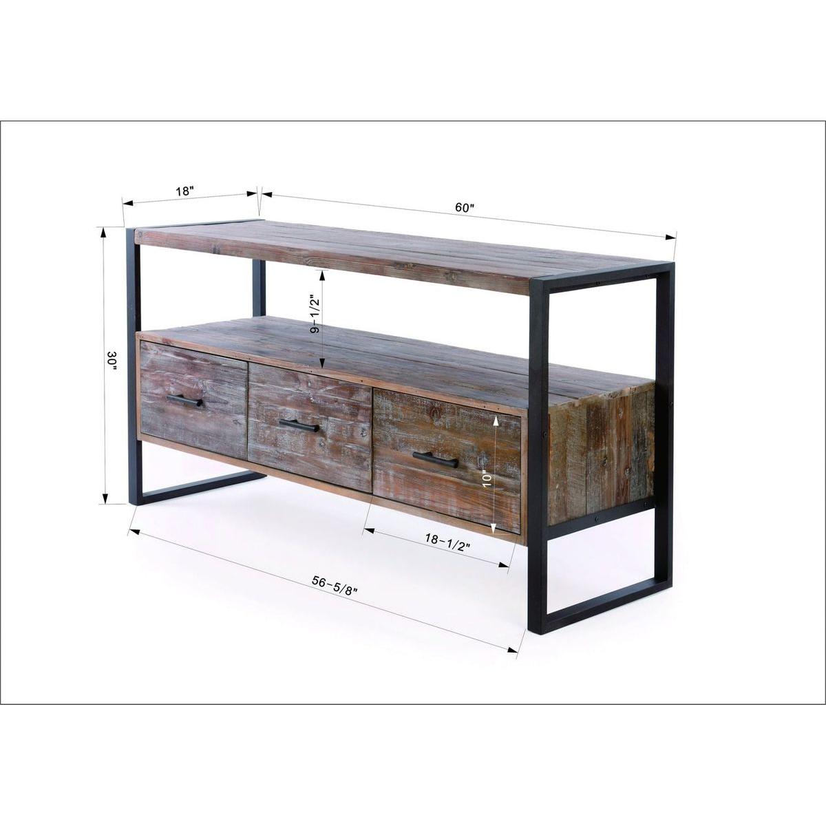 60 inch Reclaimed wood Media TV Console table with 3 Drarwer, Open Shelf, Antique finish