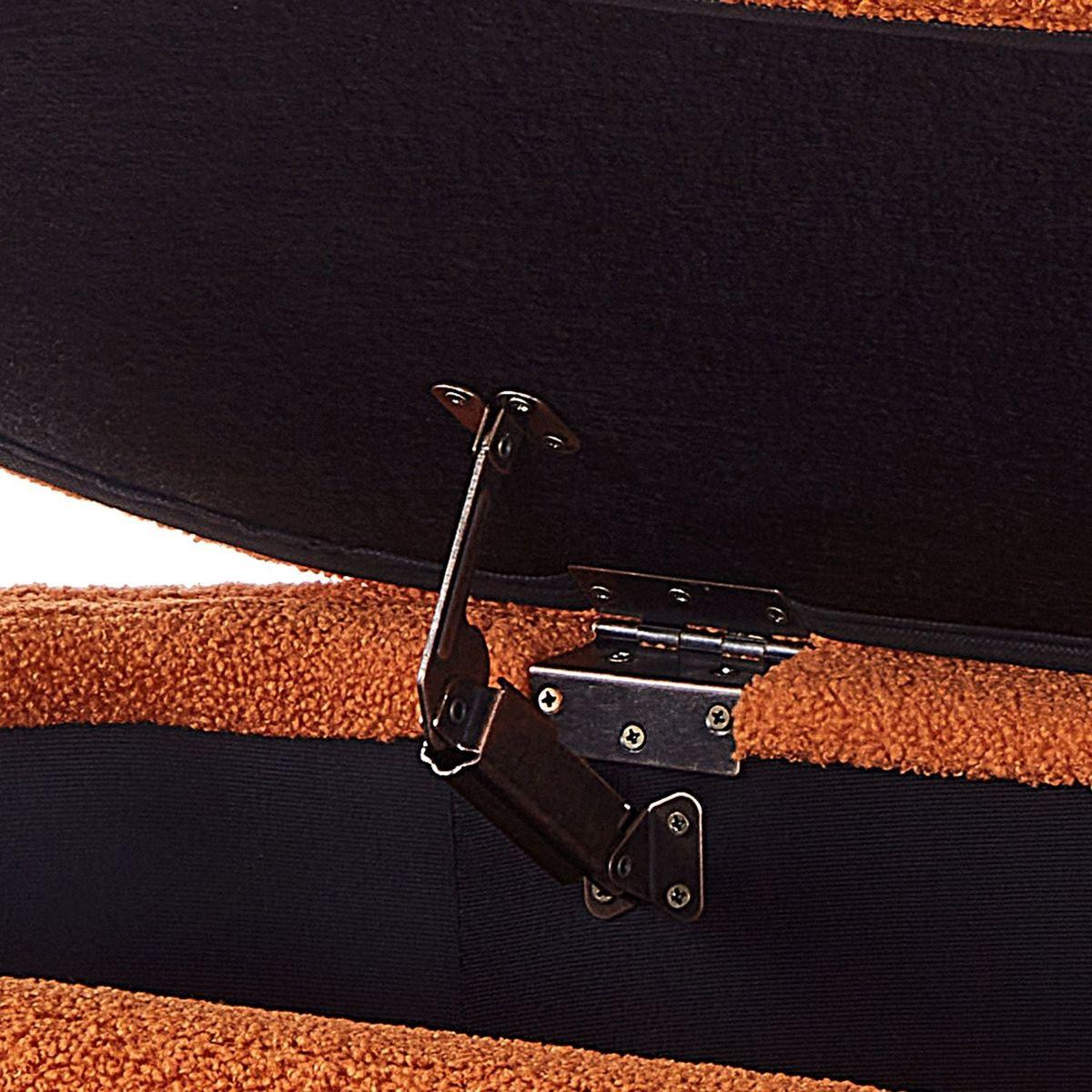 Modern Oval Storage Ottoman Bench, Upholstered Boucle Teddy Fabric End of Bed Bench with Storage, End of Bed Stool with Safety Hinge for Bedroom, Living Room, Entryway, Orange