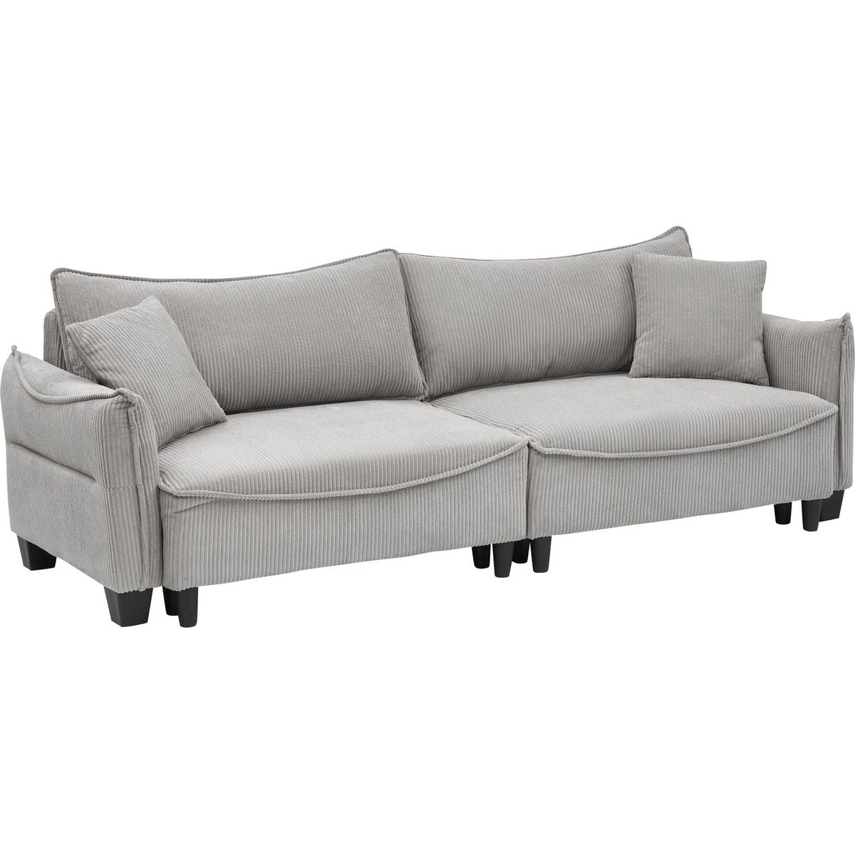 grey corduroy fabric, sofa can be converted into a sofa bed with two throw pillows, suitable for living room and other scenes