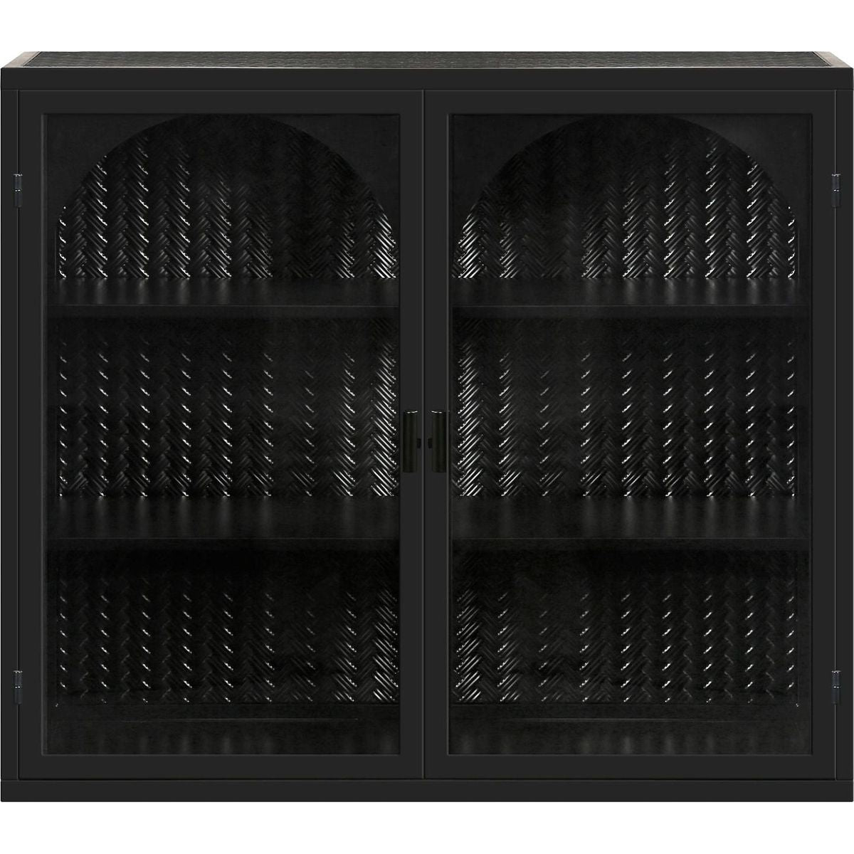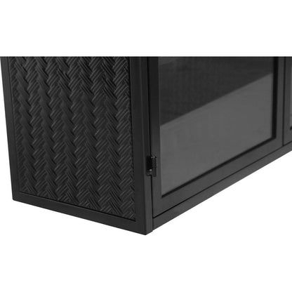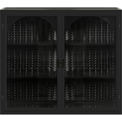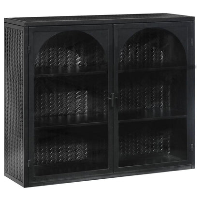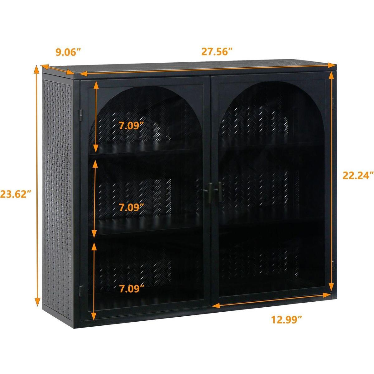 27.56"Glass Doors Modern Two-door Wall Cabinet with Featuring Three-tier Storage for Entryway Living Room Bathroom Dining Room,Wall Cabinet with Characteristic Woven Pattern,Black