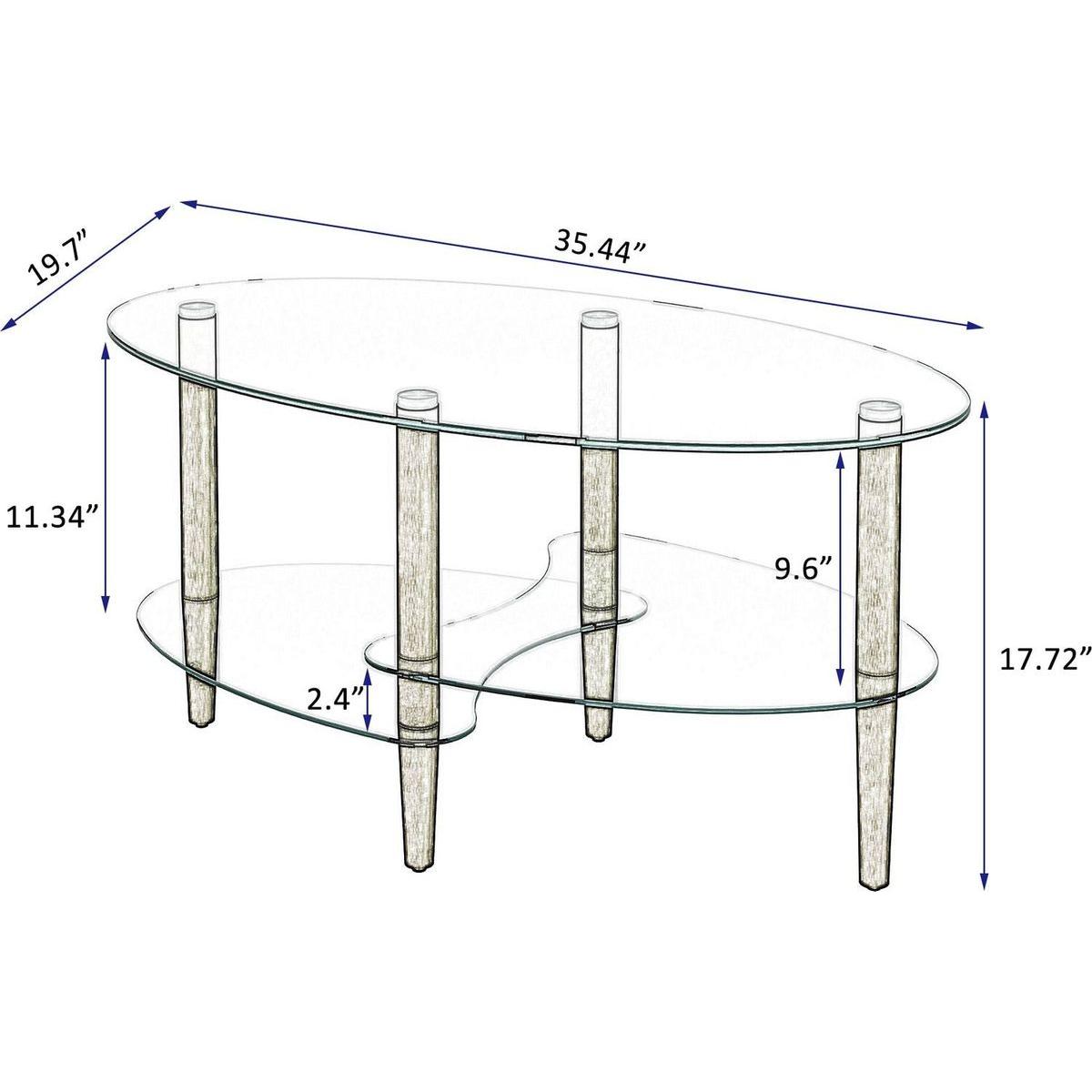 Modern design: The unique table is oval, full of classic and fashionable feel. The desktop is smooth and simple. Transparent and tempered glass will allow you show anything you want, such as your sofa, clear floor and beautiful carpet. The Smooth edges prevent you from getting hurt.The glass surface is smooth for daily cleaning.