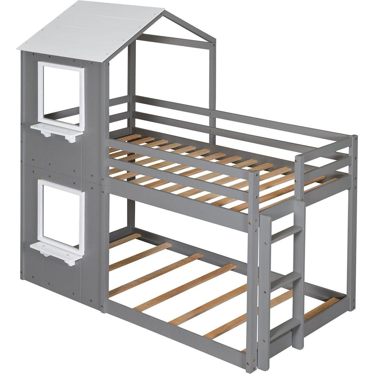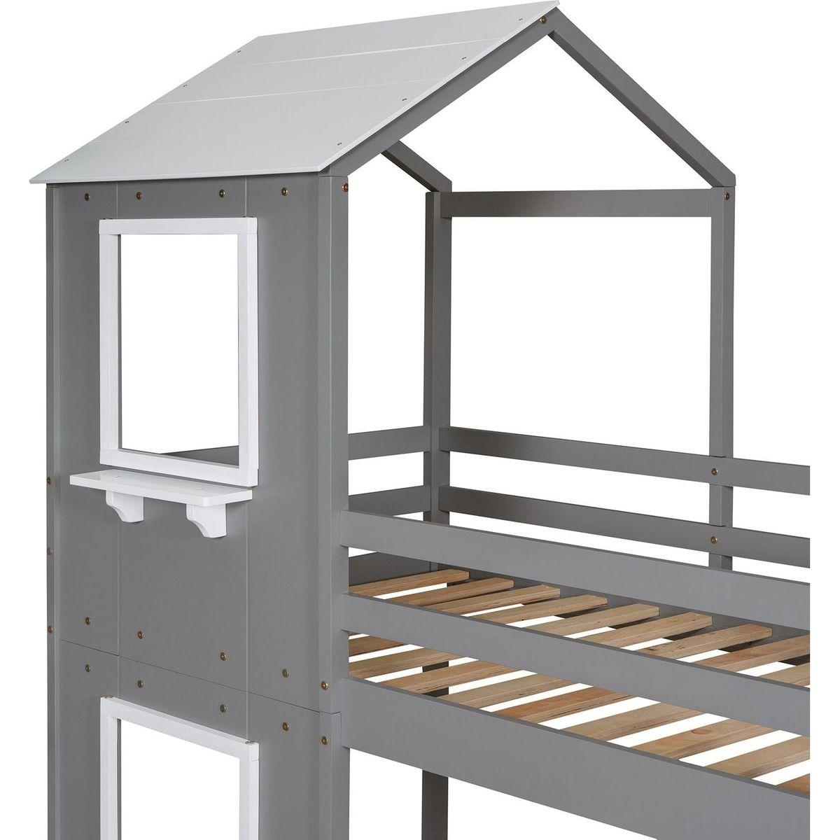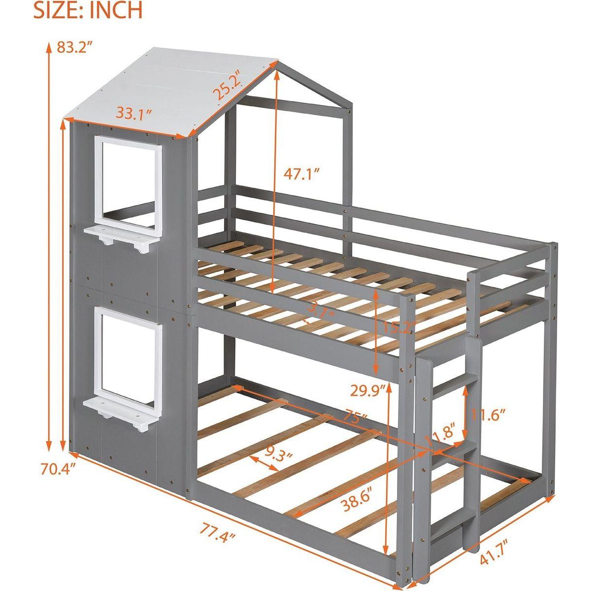- [Playhouse Inspired] Featuring a pitched roof and wall section with window, this unique and intricately designed bunk bed creates a fun and adorable space that not only serves as a comfortable sleeping area but also double as a space for you to play and have fun.
