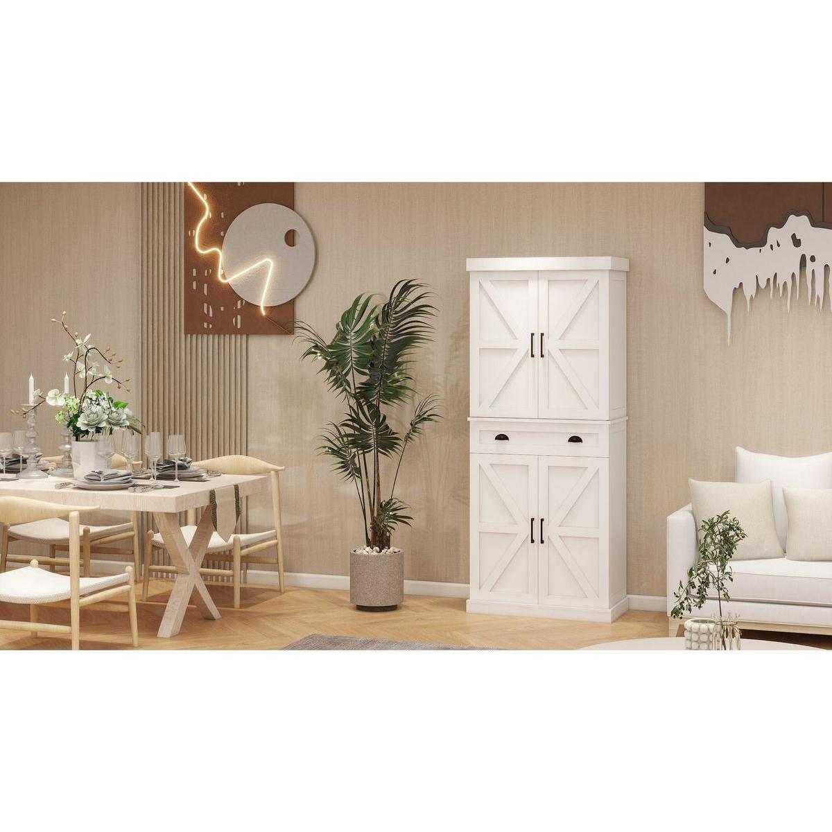 - Multi-Purpose:The multifunctional pantry cabinet is a versatile addition to extend the storage space in any room, including kitchens, dining rooms, living rooms, break rooms, etc. The clear lines and white finish make up a simple but stylish appearance, which allows the cabinet to go well with any furnishing styles.