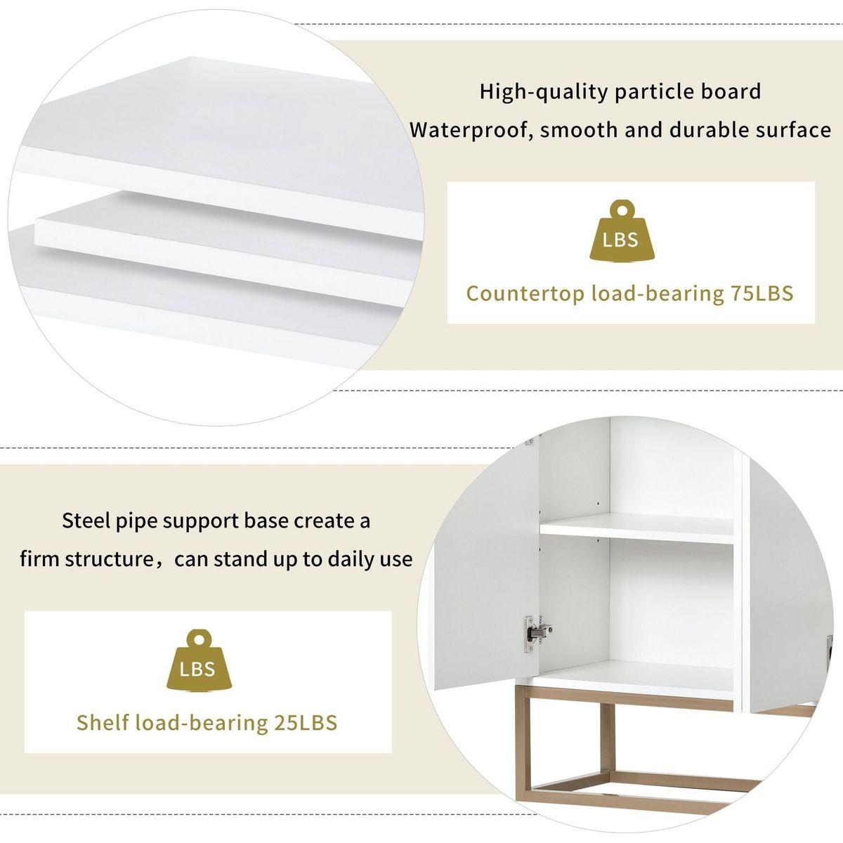 1.Mordern Elegant Sideboard: This sideboard buffet cabinet features a white cabinet body with gold metal legs, compact look is very suitable for small space. Whole dimensions: 47.2”Lx11.8”Wx31.5”H.
