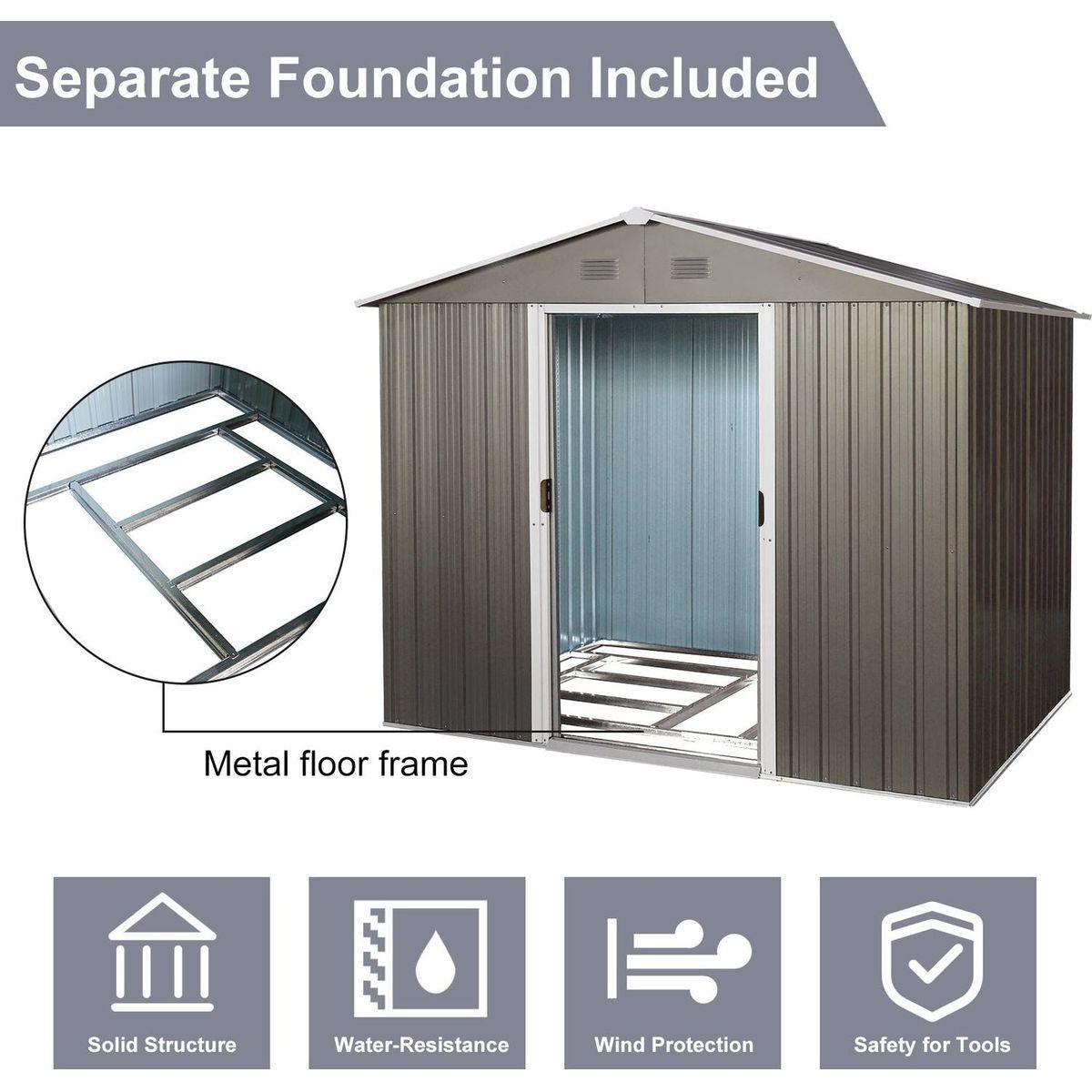 6ft x 8ft Outdoor Metal Storage Shed with Floor Base,Gray(SKU: W540S00012)